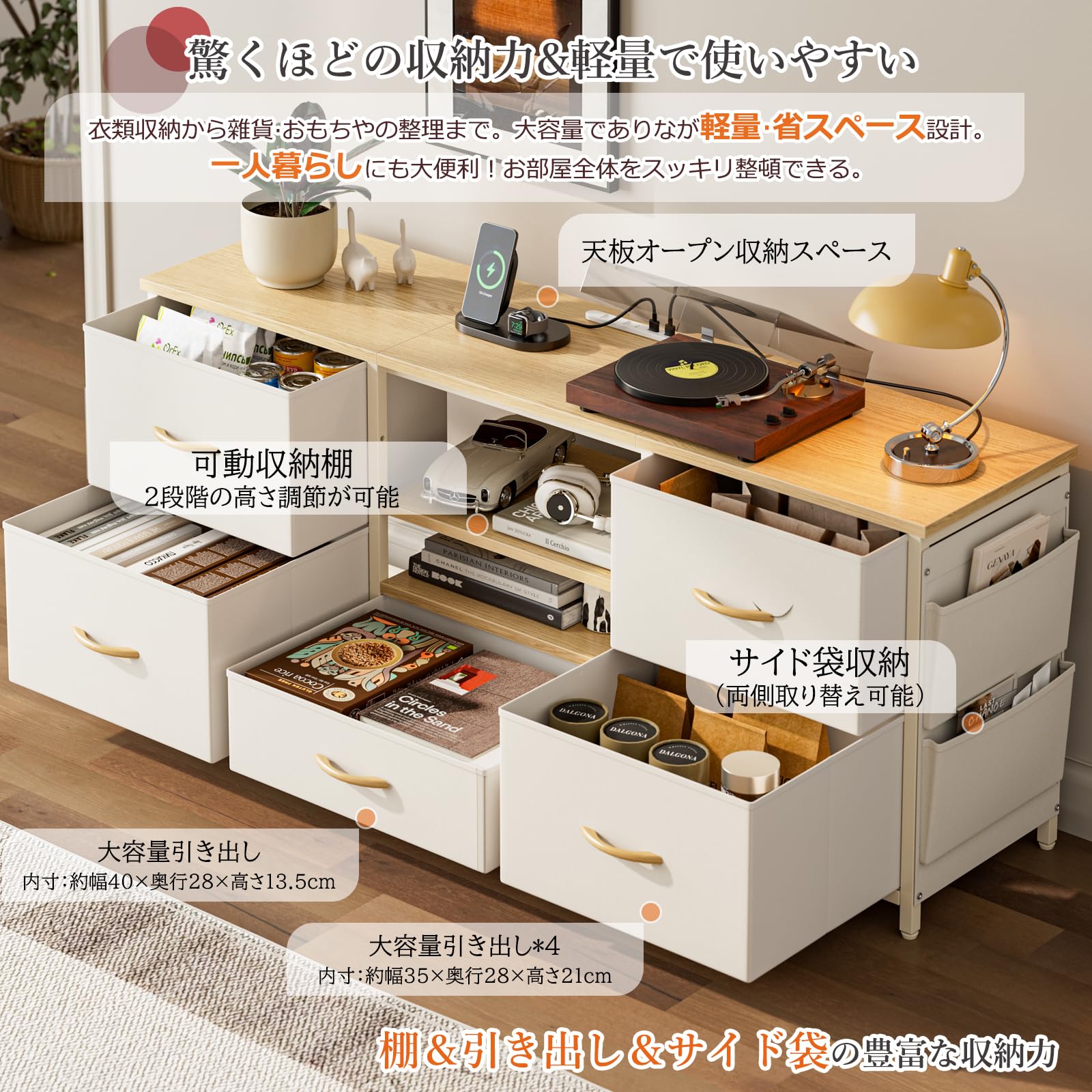 IKIFLY テレビ台 テレビボード 収納チェスト ロータイプ 棚付き 引き出し ローボード ポケット付き テレビラックワイドチェス 大容量 フック付き 32/40/50/55型対応tv台 可動棚 オープン収納 省スペース新生活 北欧 おしゃれ 総耐荷重150kg(幅120×奥行30×高さ50cm,ホワイト)