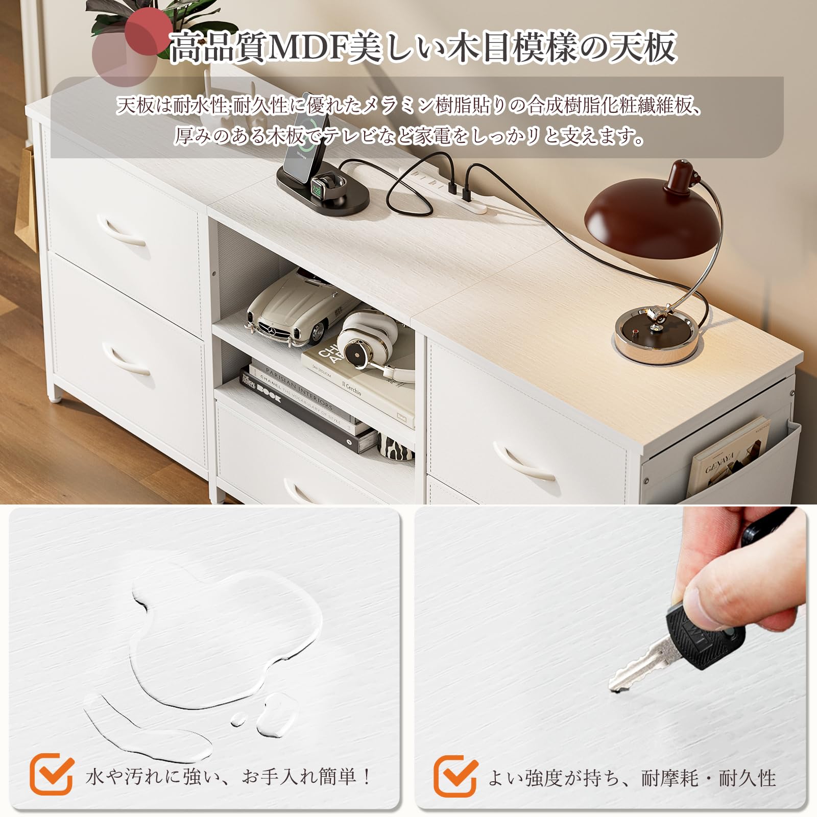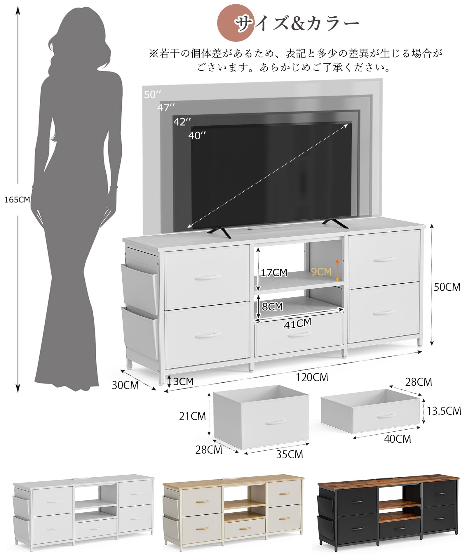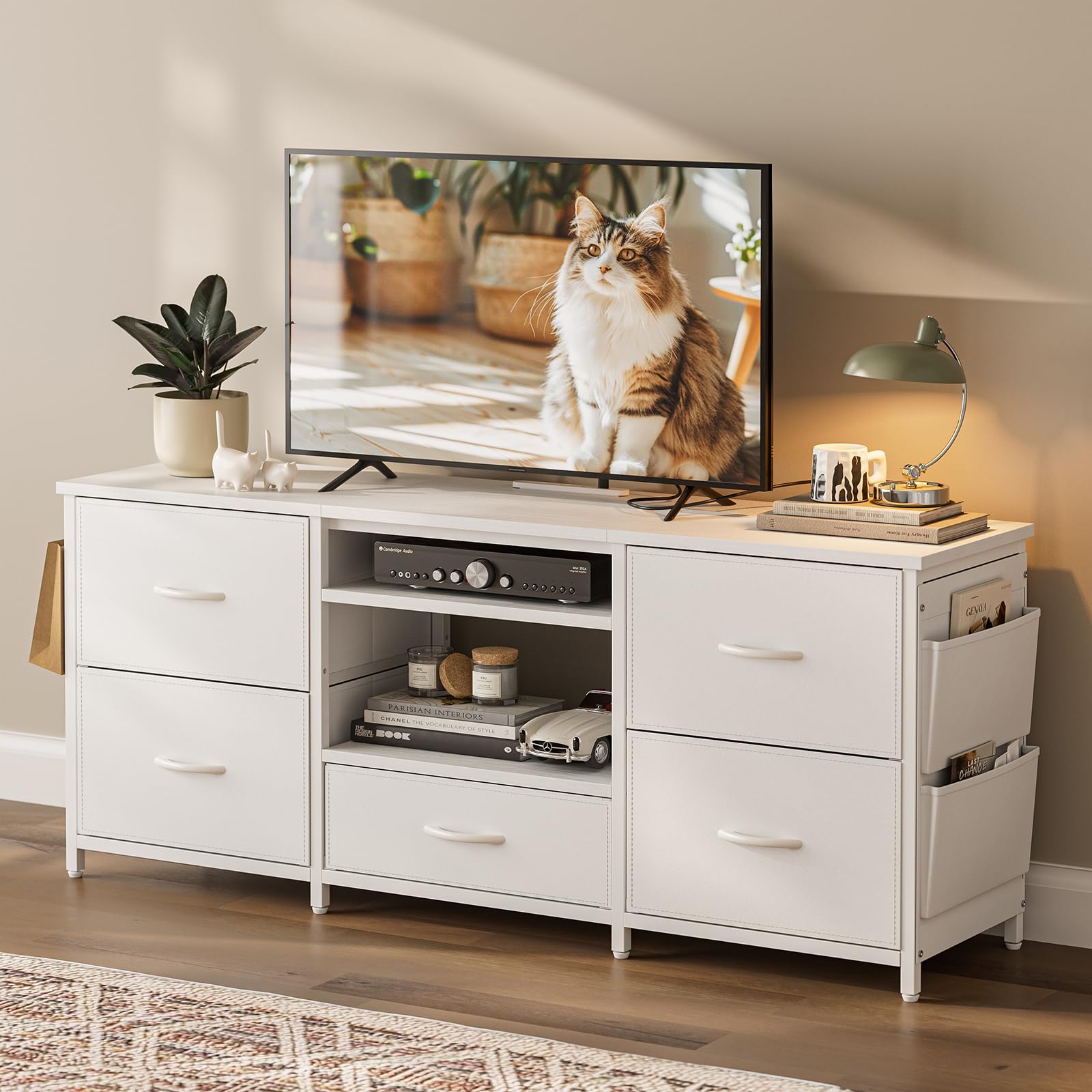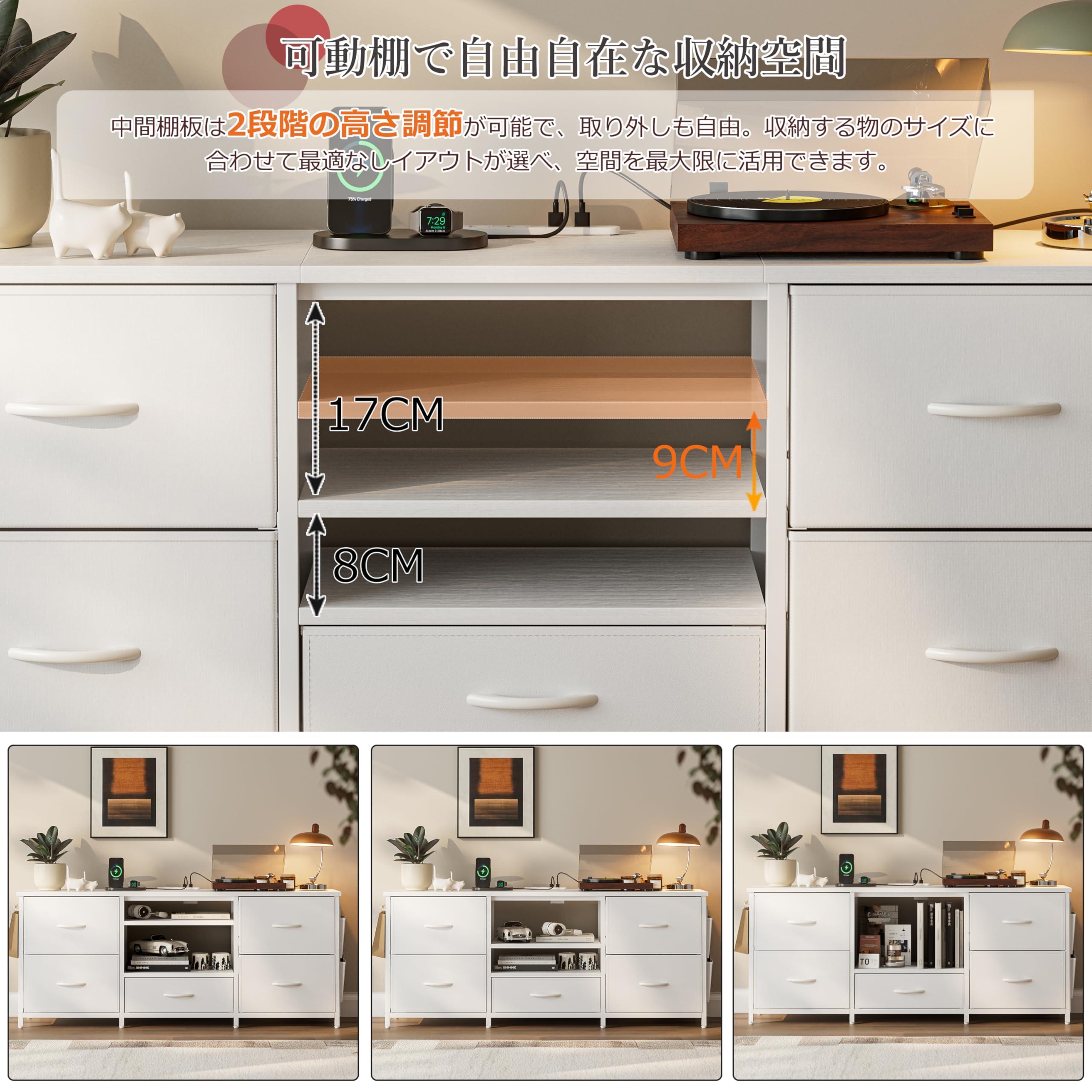 IKIFLY テレビ台 ローボード 収納チェスト ロータイプ 棚付き 引き出し付き ワイドチェスト 大容量 可動棚 オープン 42 32インチ 55型まで対応 省スペース 北欧 おしゃれ ウォールナット 耐荷重50kg 幅135×奥行30×高さ63cm (ホワイト)