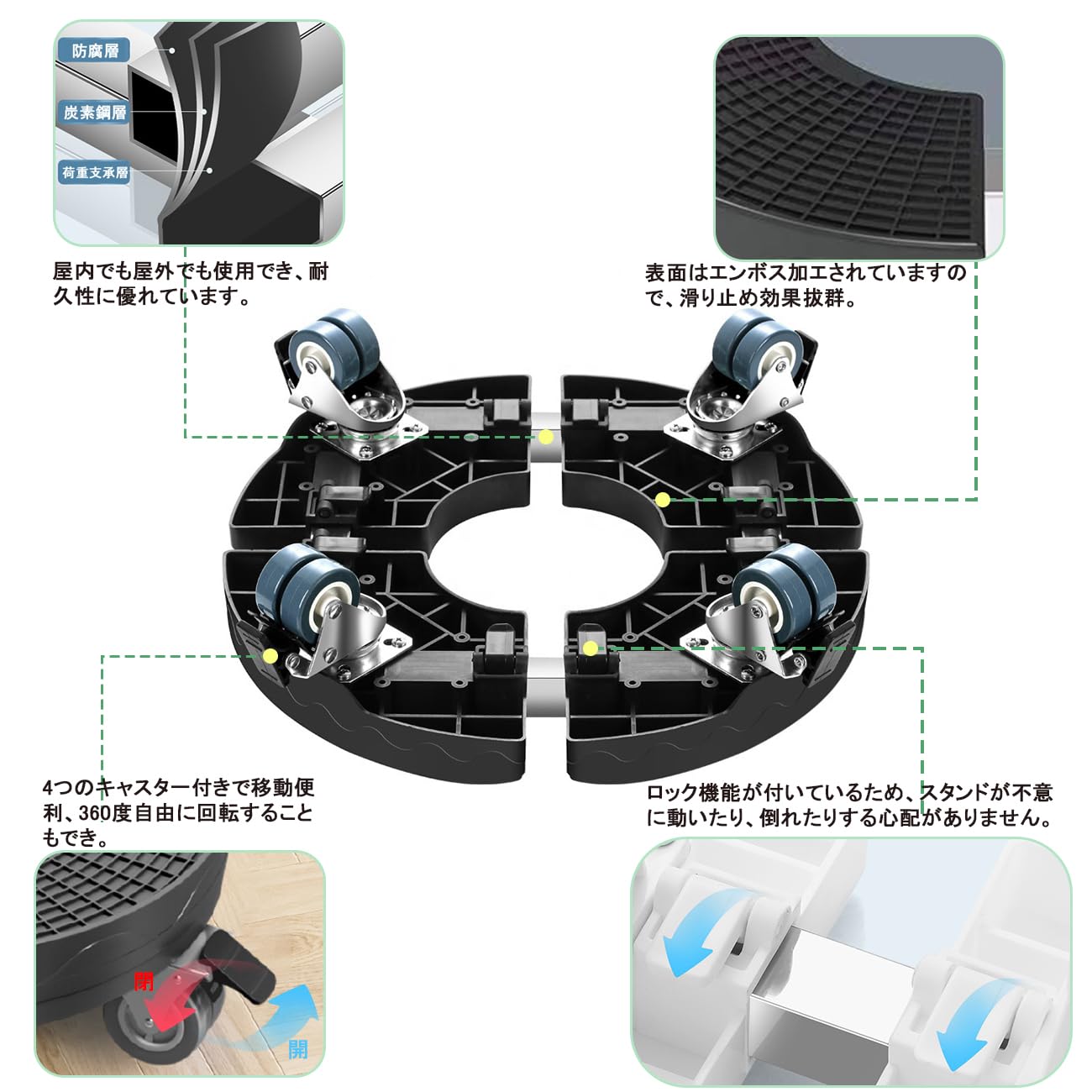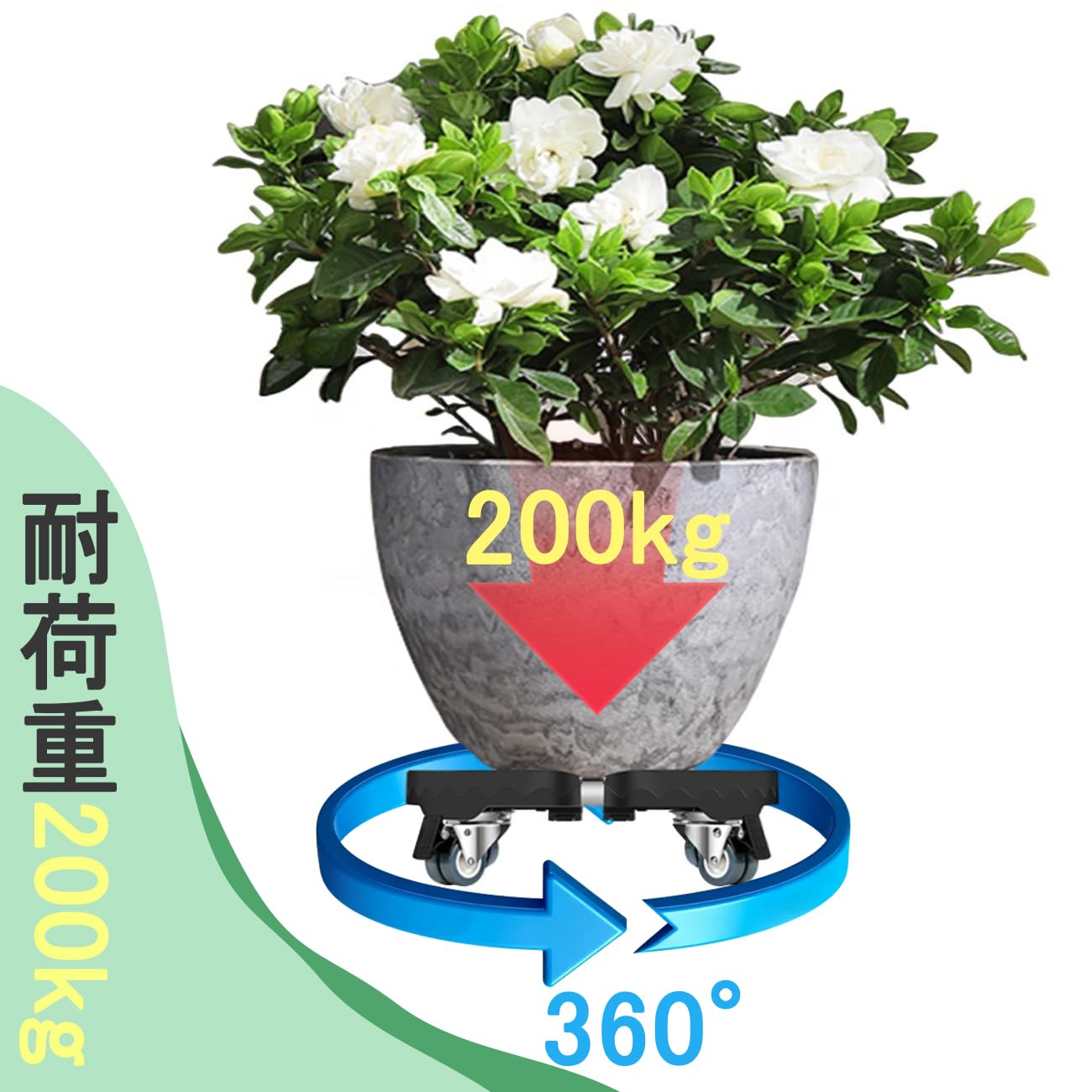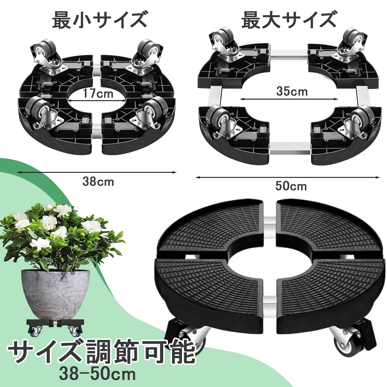 VitalBloom 植木鉢台 フラワースタンド ブレーキ付き移動花台 伸縮タイプ プランタースタンド 360°移動便利 滑り止め 38.1-55.8cm 伸縮可能 円形と矩形対応 高さ9.4㎝ 耐荷重200kg (ブラック)