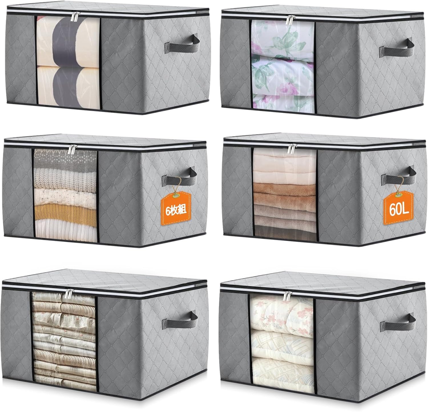 布団収納袋 衣類収納 6枚組 60L:衣装ケース 布 衣替え 収納ケース 毛布収納袋 洋服収納 衣服 衣装整理 折りたたみ式 収納ボックス 衣装収納 不織布 大型 引越しバッグ 布団収納カバン キャンプ 旅行 省スペース ビッグバッグ 寝具ケース clothes storage