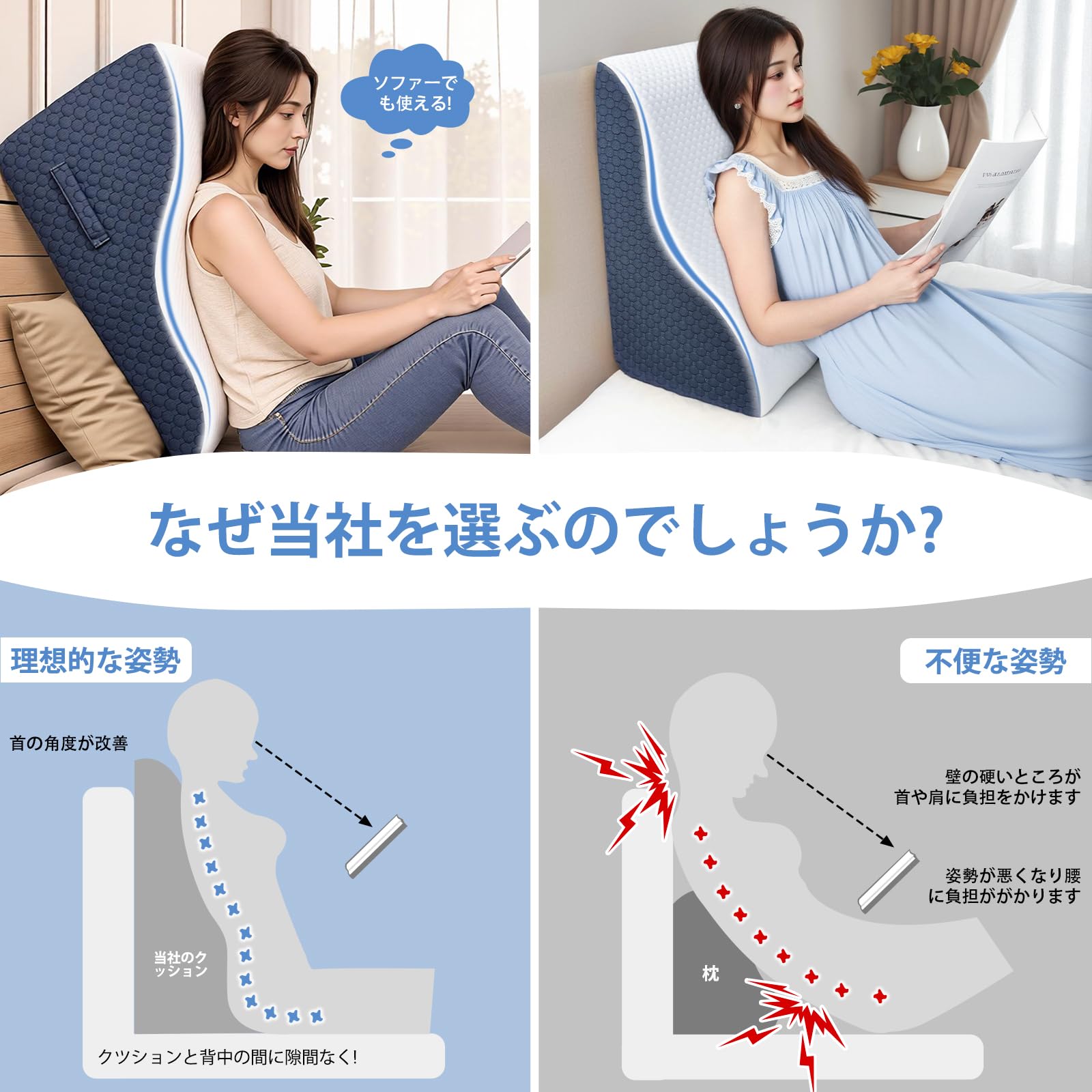 三角クッション 三角枕 背もたれ クッション 高反発メモリーフォーム 背もたれクッション 低反発+高反発 2層構造 足上げ 読書用 お年寄り老人用