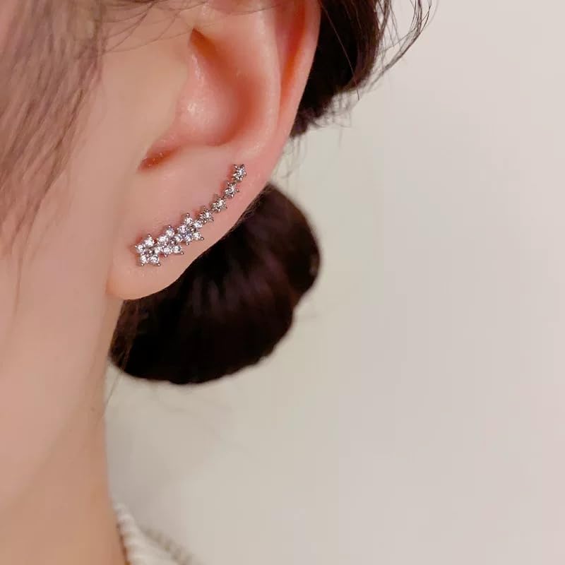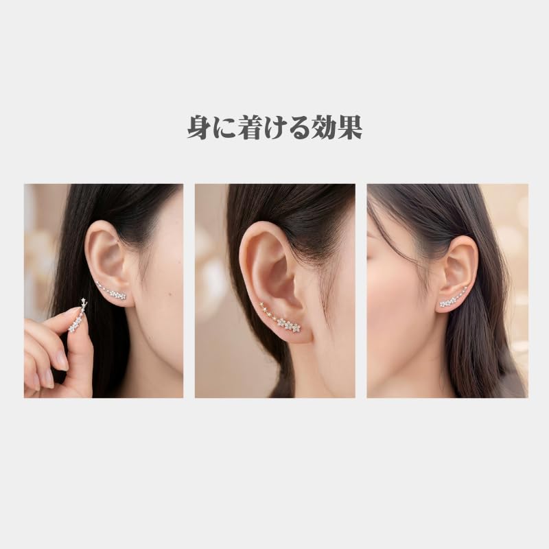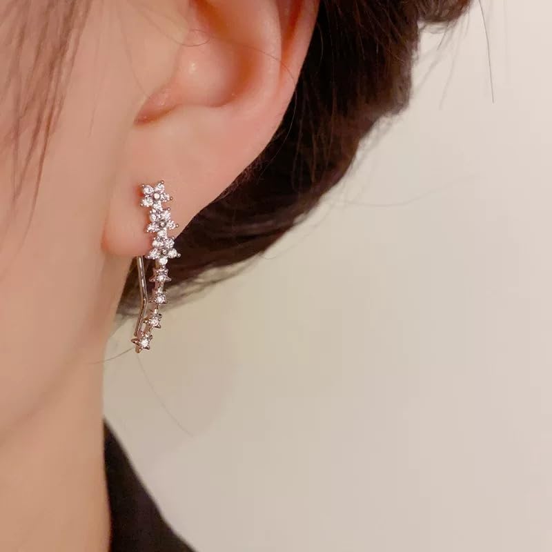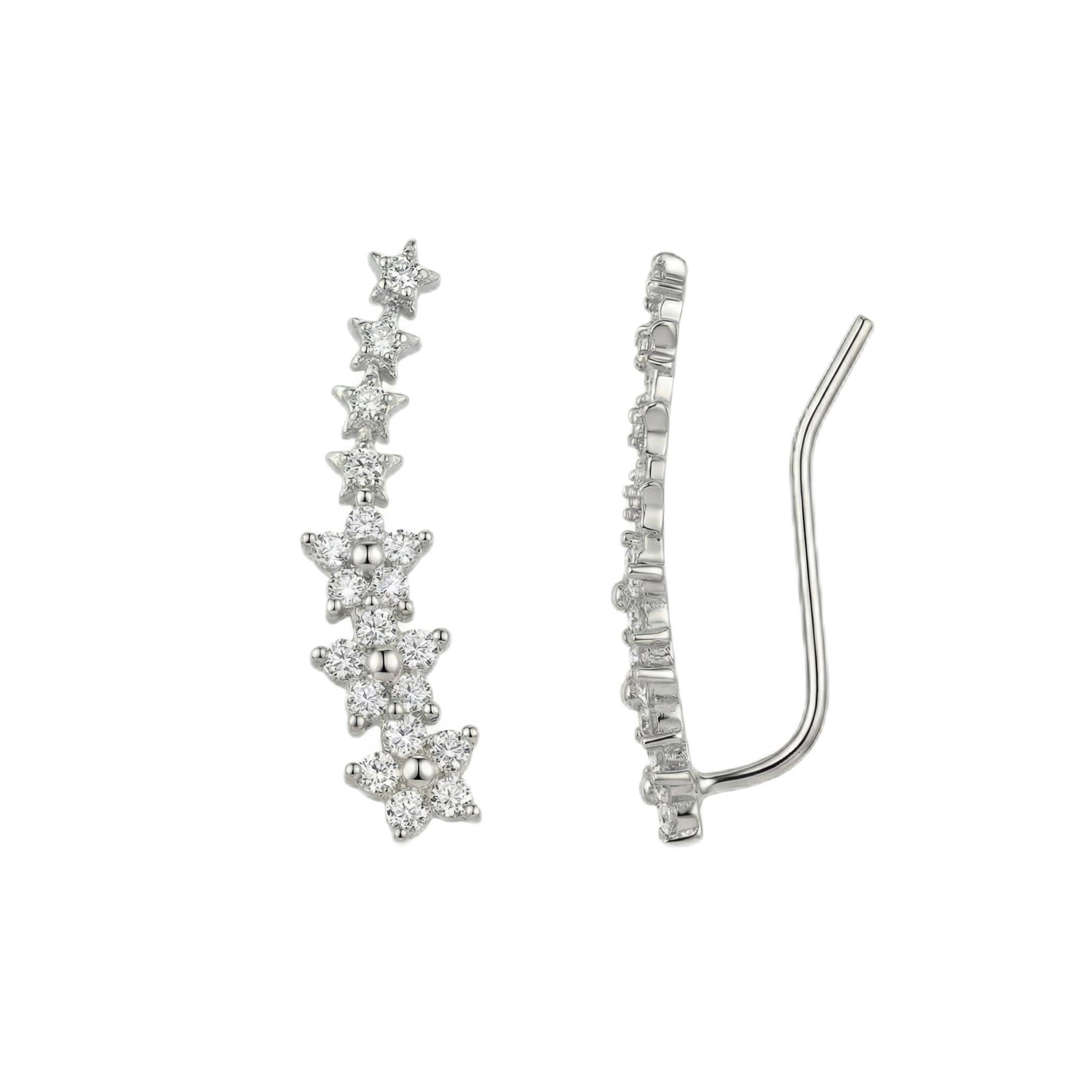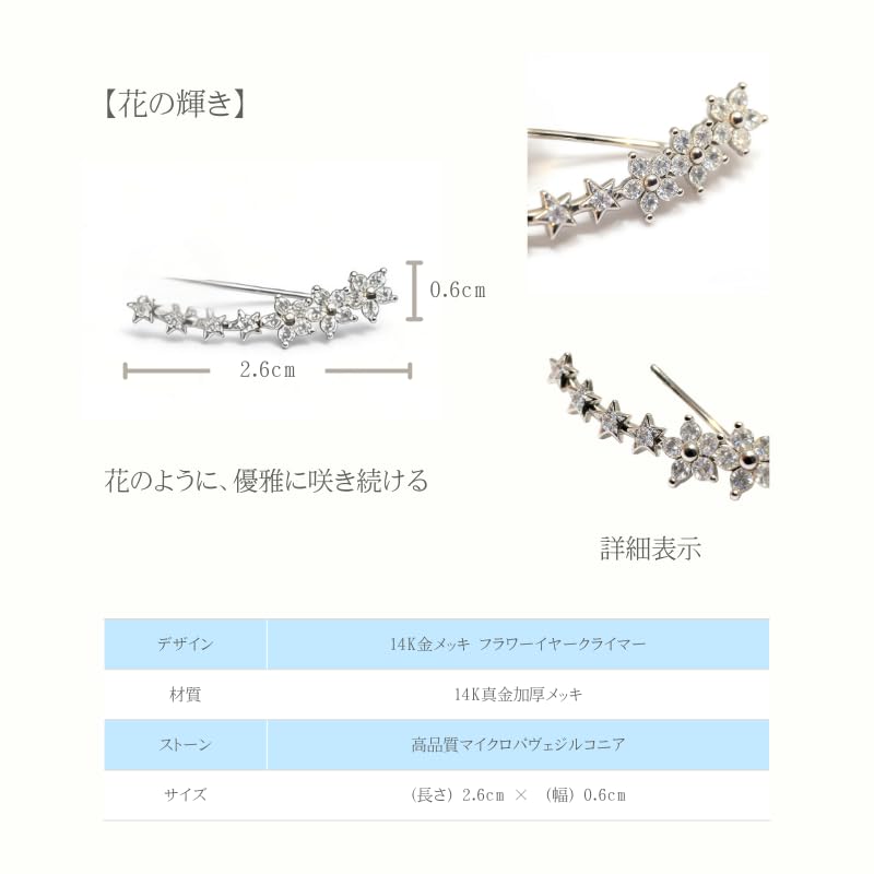 Seraphina Gems ピアス レディース イヤークライマー フラワー ジルコニア 14K金メッキ 金属アレルギー対応 キャッチレス イヤーカフ風 花デザイン 上品 華奢 軽量 約2.6cm 誕生日 プレゼント ギフトBOX付 シルバー [並行輸入品]