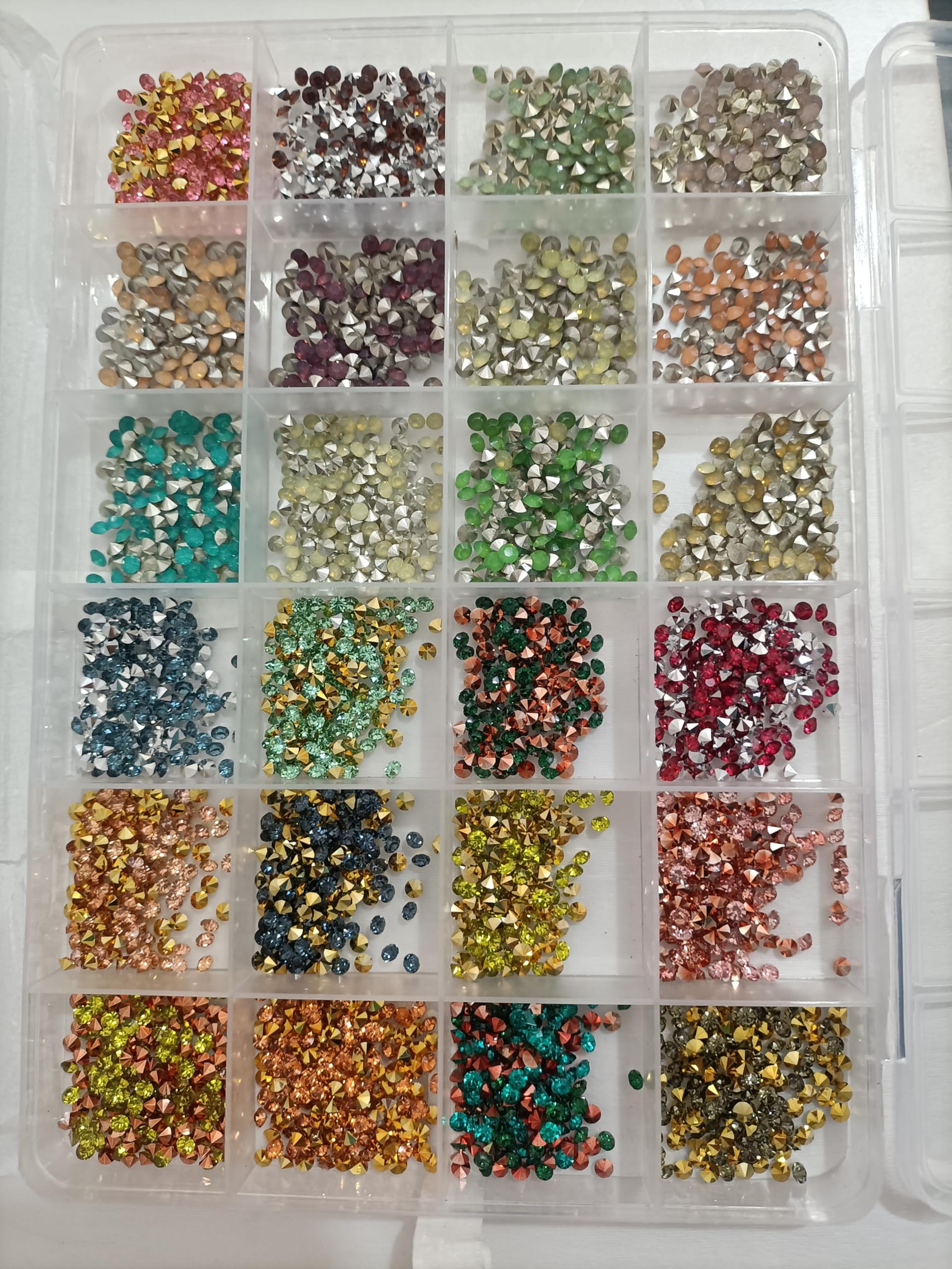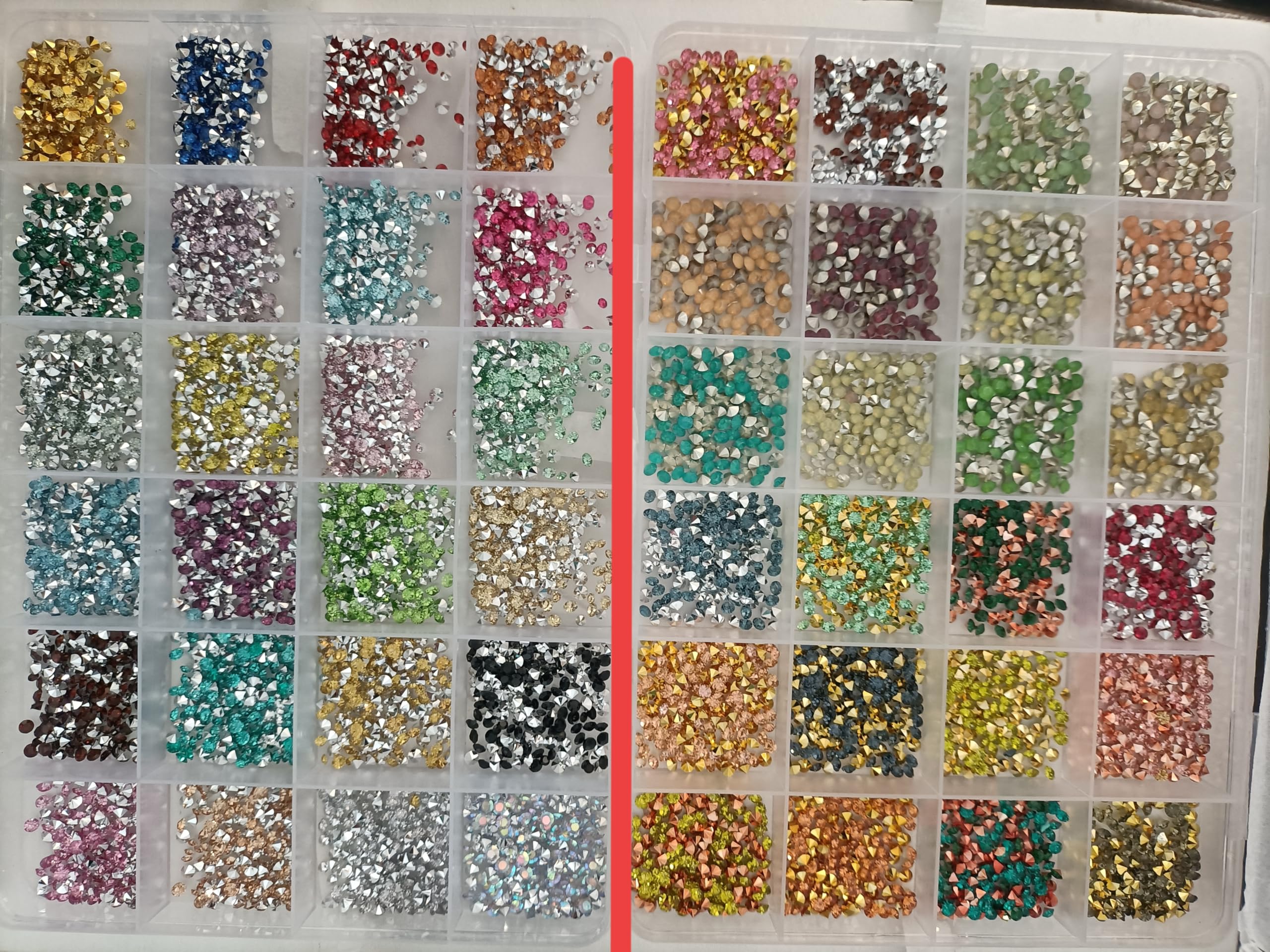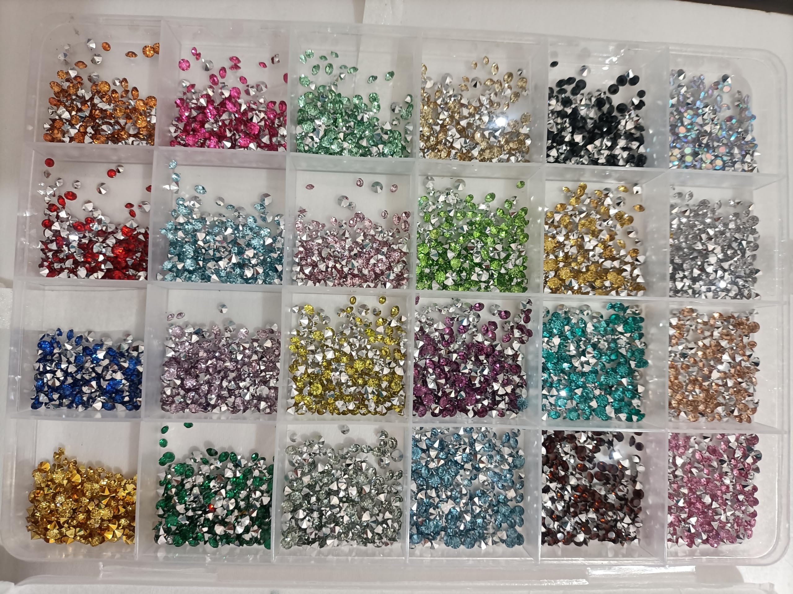 ネイルドリルアクセサリー 超閃尖底丸ドリル 24色 +24色(48色)10000粒以上 大小MIX ネイルアート DIY用 スマホケース ヘアピン ピアス装飾