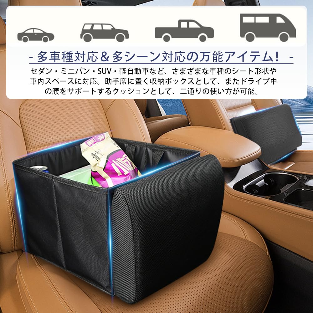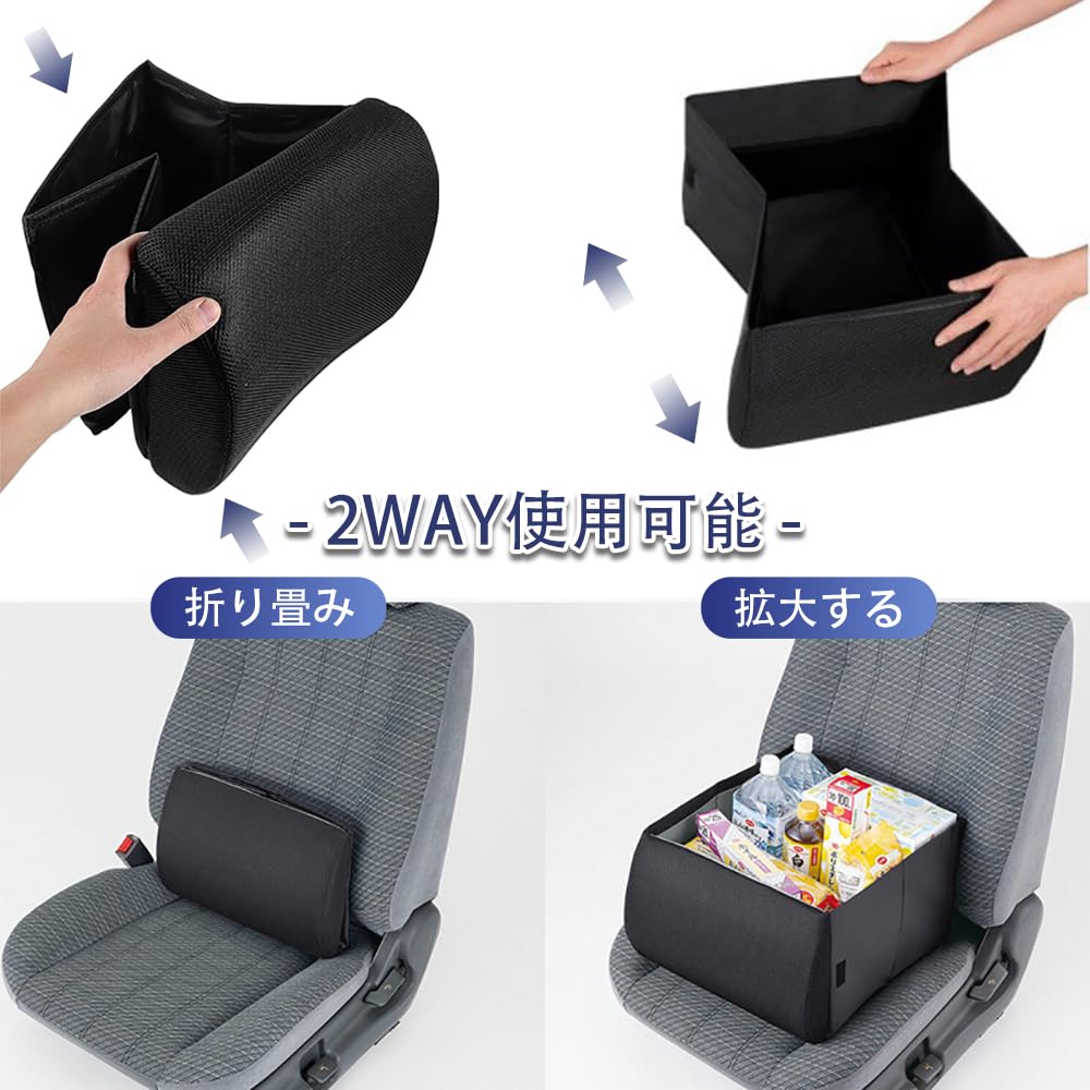 YFFSFDC シートボックス 車 収納 収納ボックス 2WAY 腰 腰サポート 枕として クッション 折りたたみ式 大容量 コンパクト 荷物置き 荷物入れ 車便利グッズ 多車種対応 多シーン対応