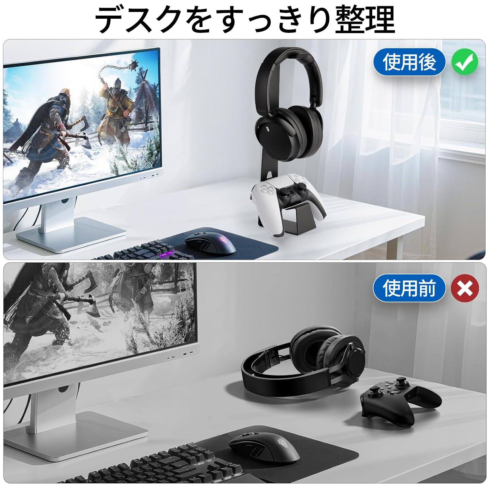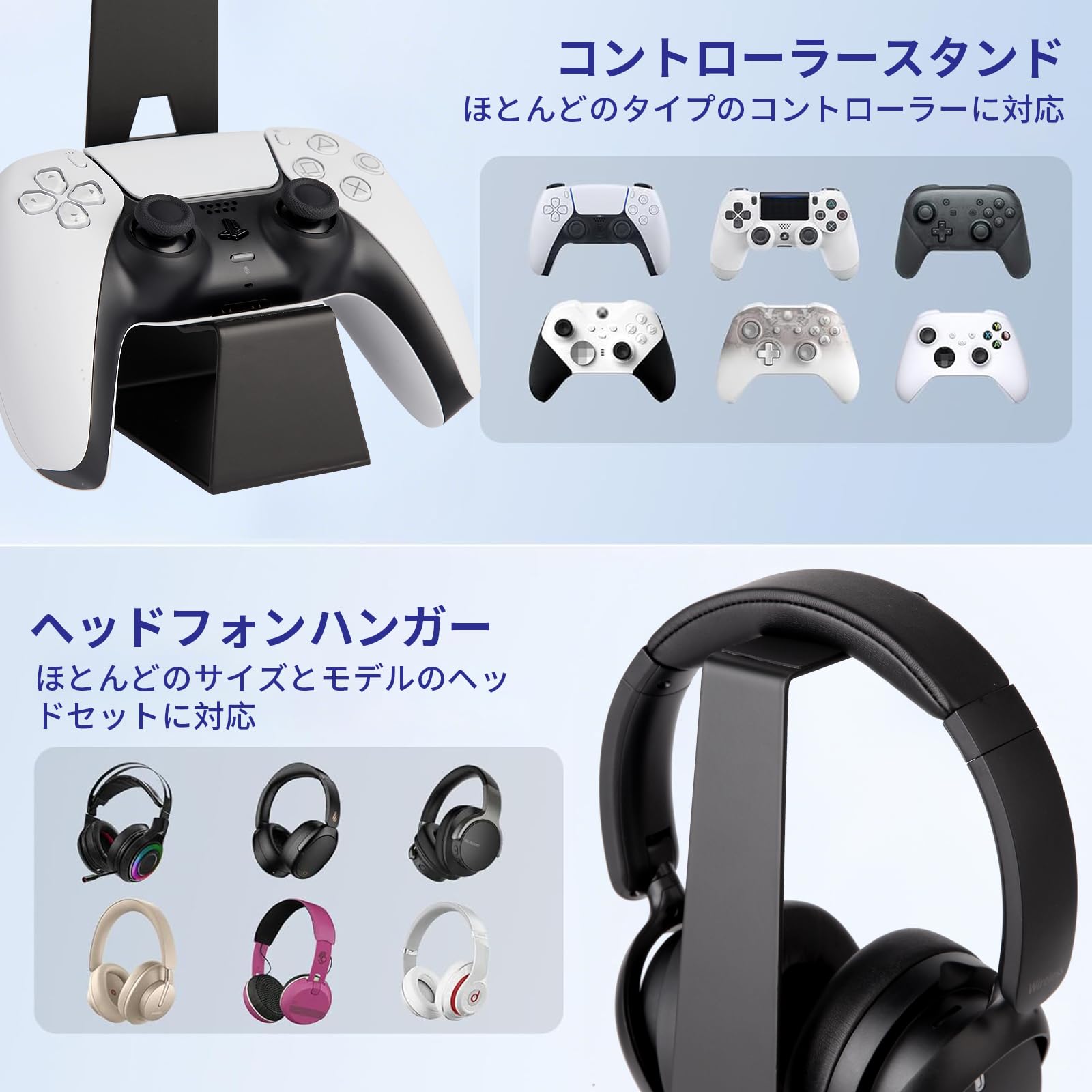 KAIXUANMAN コントローラー ヘッドホン スタンド 金属 おしゃれ ゲームコントローラー収納ラック プロコン スタンド 省スペース ヘッドホンハンガー 省スペース 安定性 滑り止め ブラック