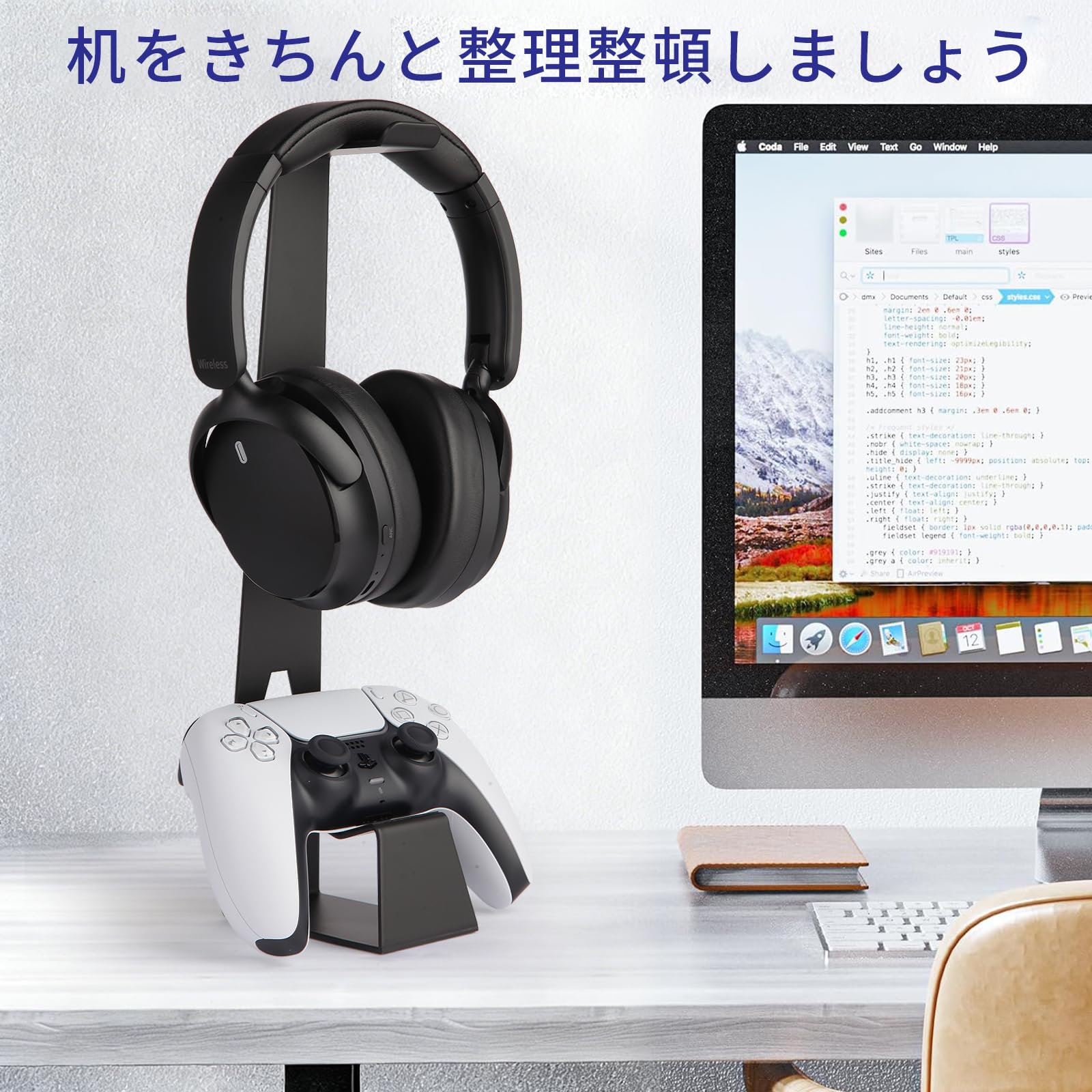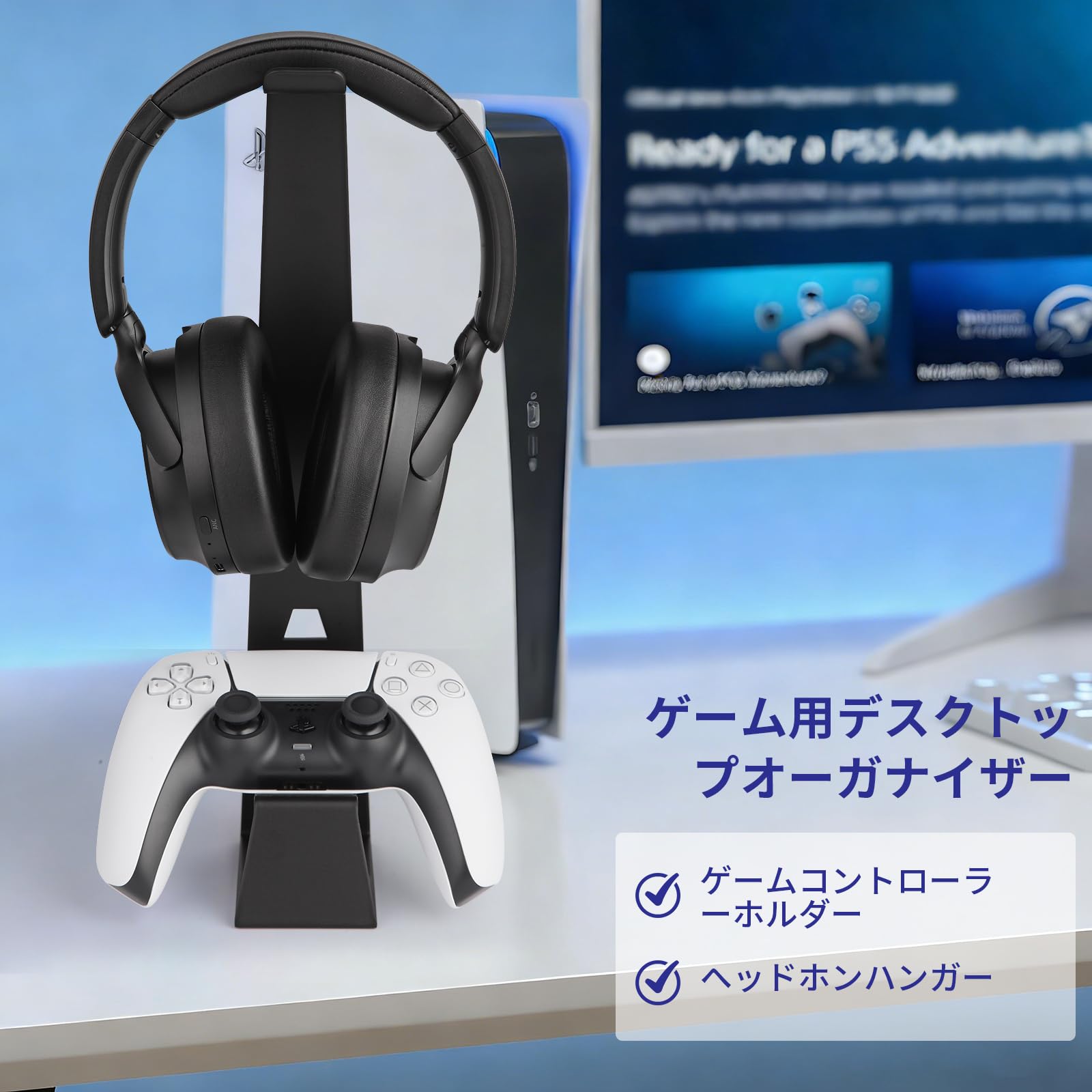 KAIXUANMAN ヘッドホン コントローラー スタンド 金属 おしゃれ ゲームコントローラー収納ラック switch 2 プロコン スタンド 省スペース ヘッドホンハンガー コンパクト 安定性 滑り止め ブラック
