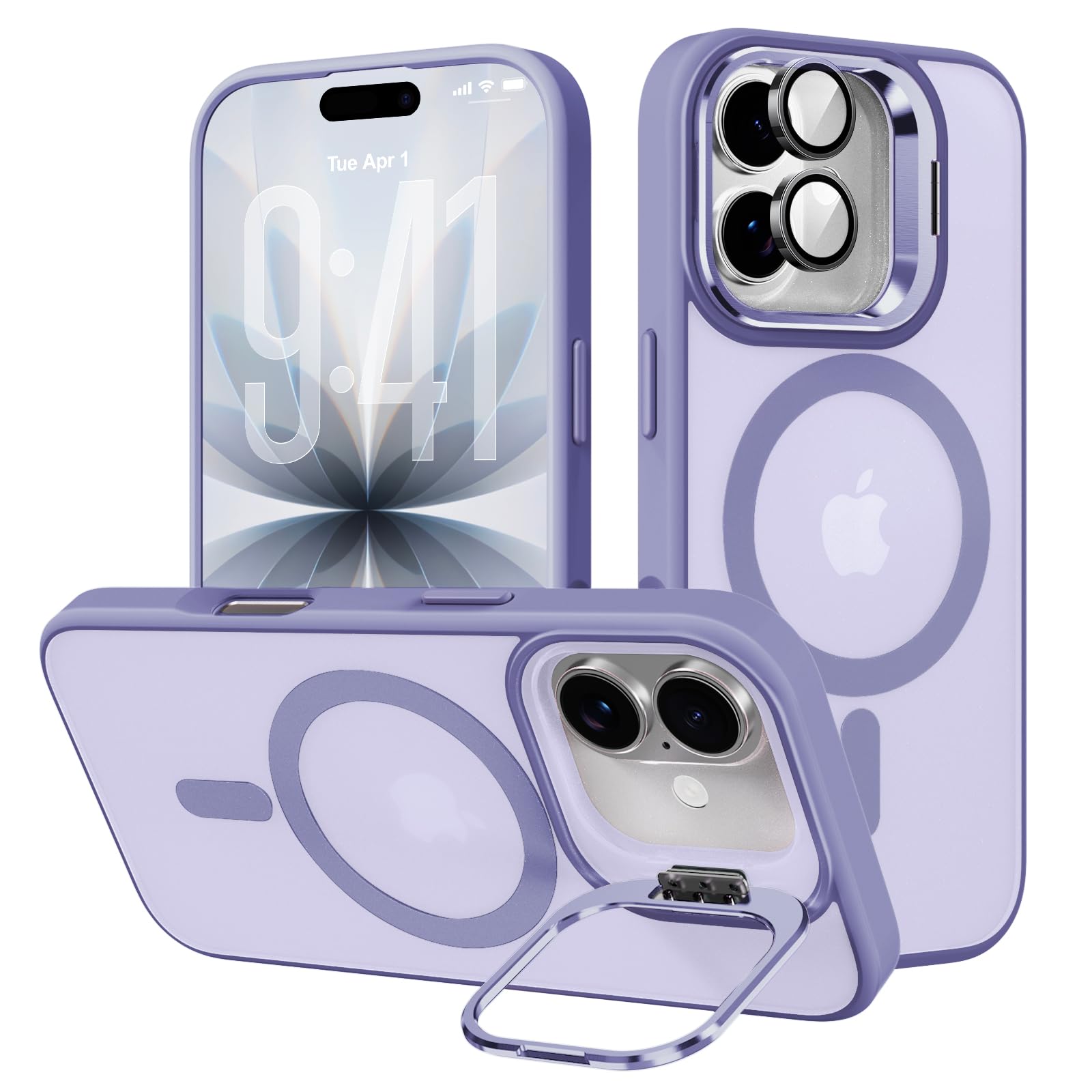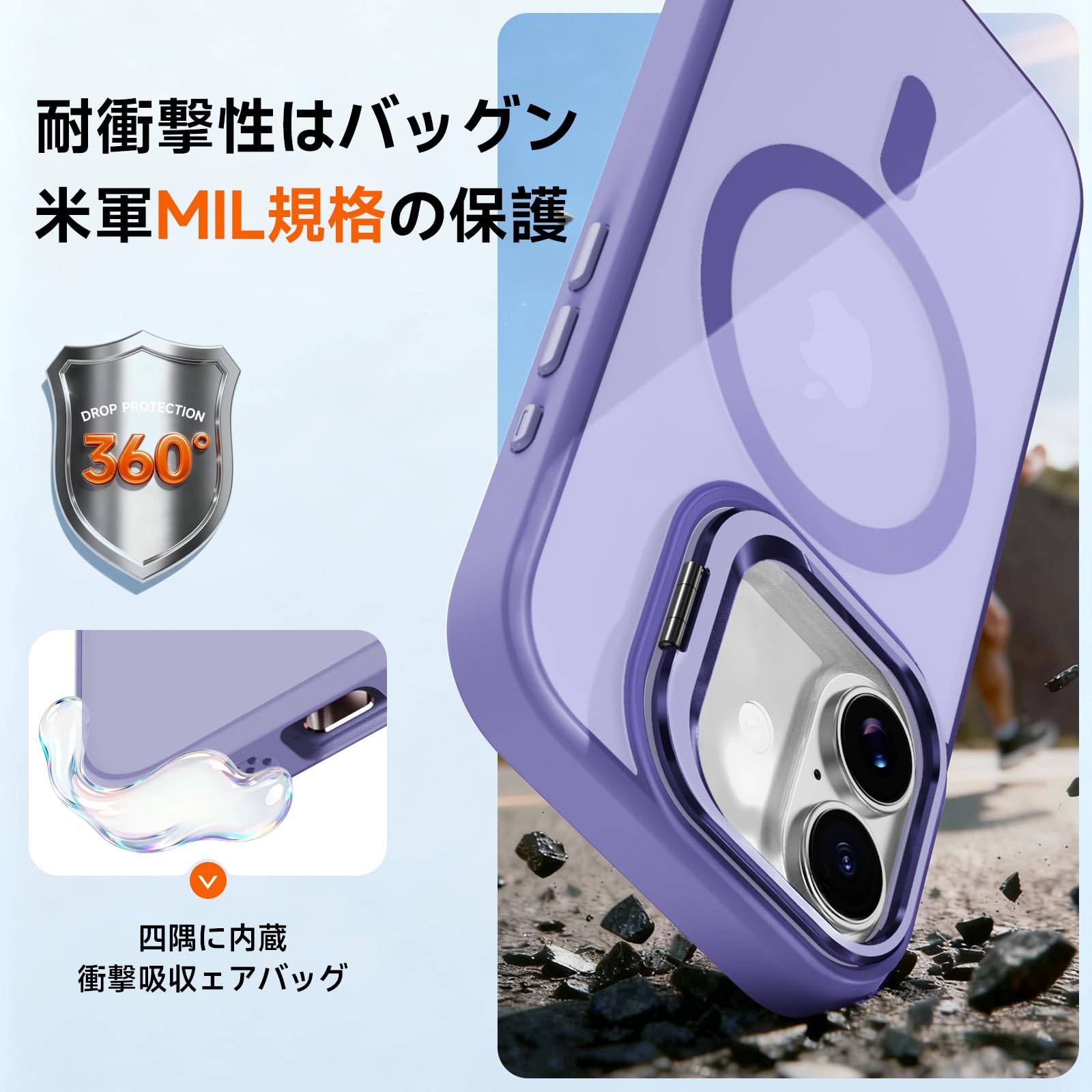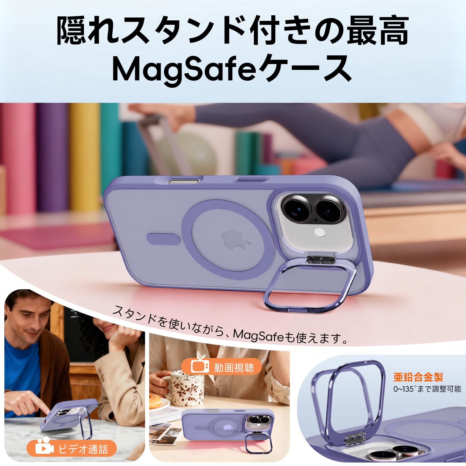 iPhone 17 専用ケースMagSafe対応 隠れスタンド アイフォン 17スマホケース マグネット カメラコントロールボタン 質感 耐衝撃 薄型 軽量 ワイヤレス充電対応 ストラップホール付き レンズカバー付き (ライトパープル)