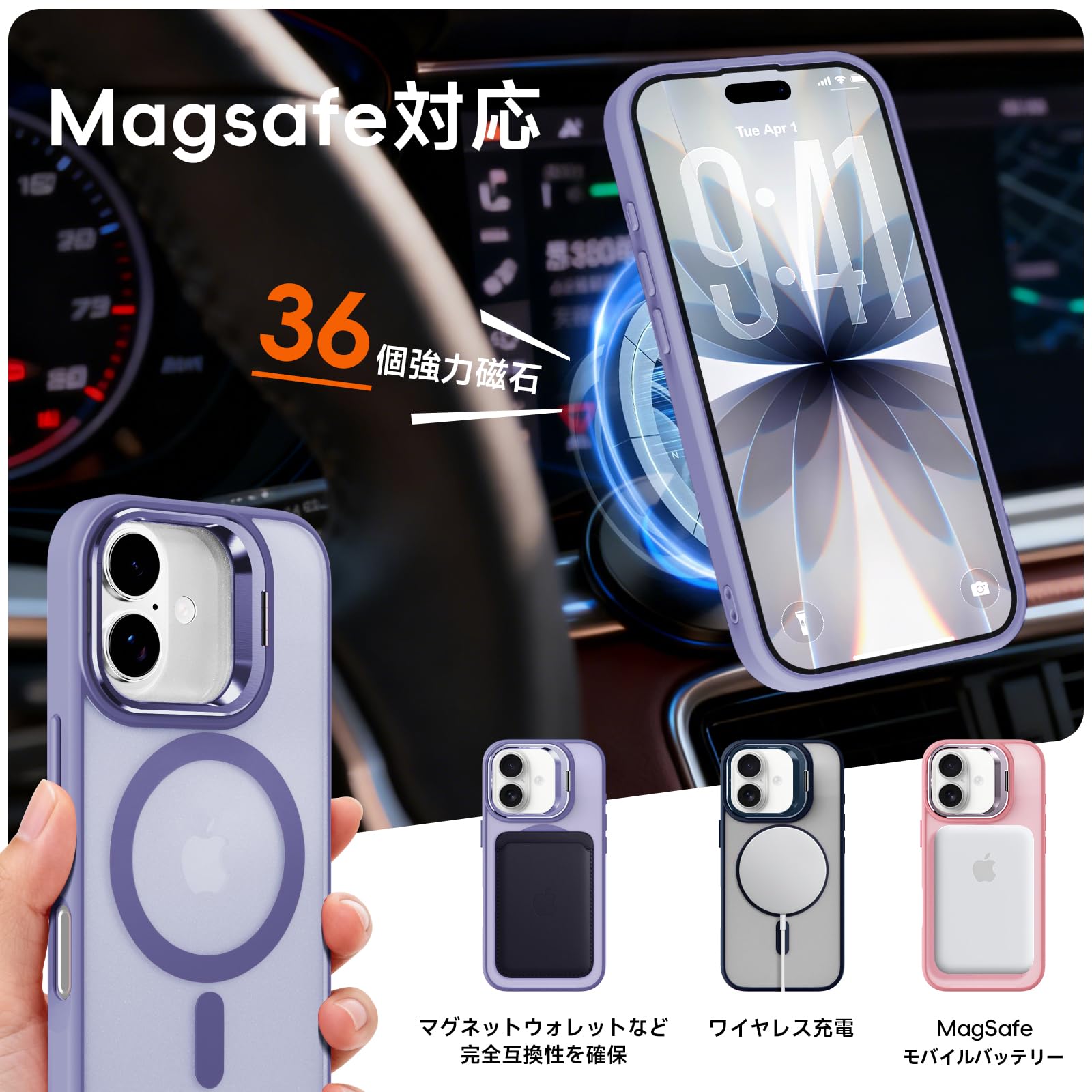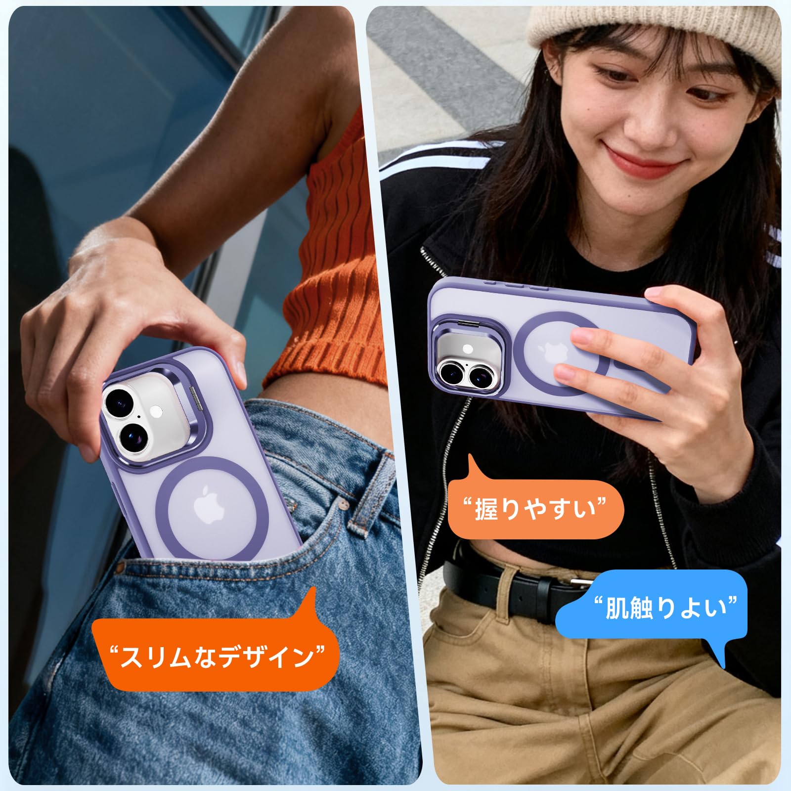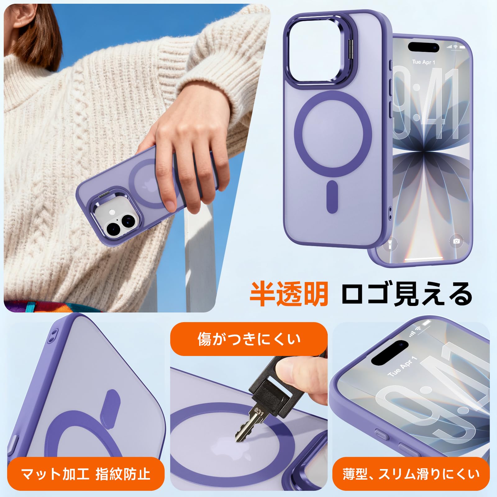 iPhone 17 専用ケースMagSafe対応 隠れスタンド アイフォン 17スマホケース マグネット カメラコントロールボタン 質感 耐衝撃 薄型 軽量 ワイヤレス充電対応 ストラップホール付き レンズカバー付き (ライトパープル)