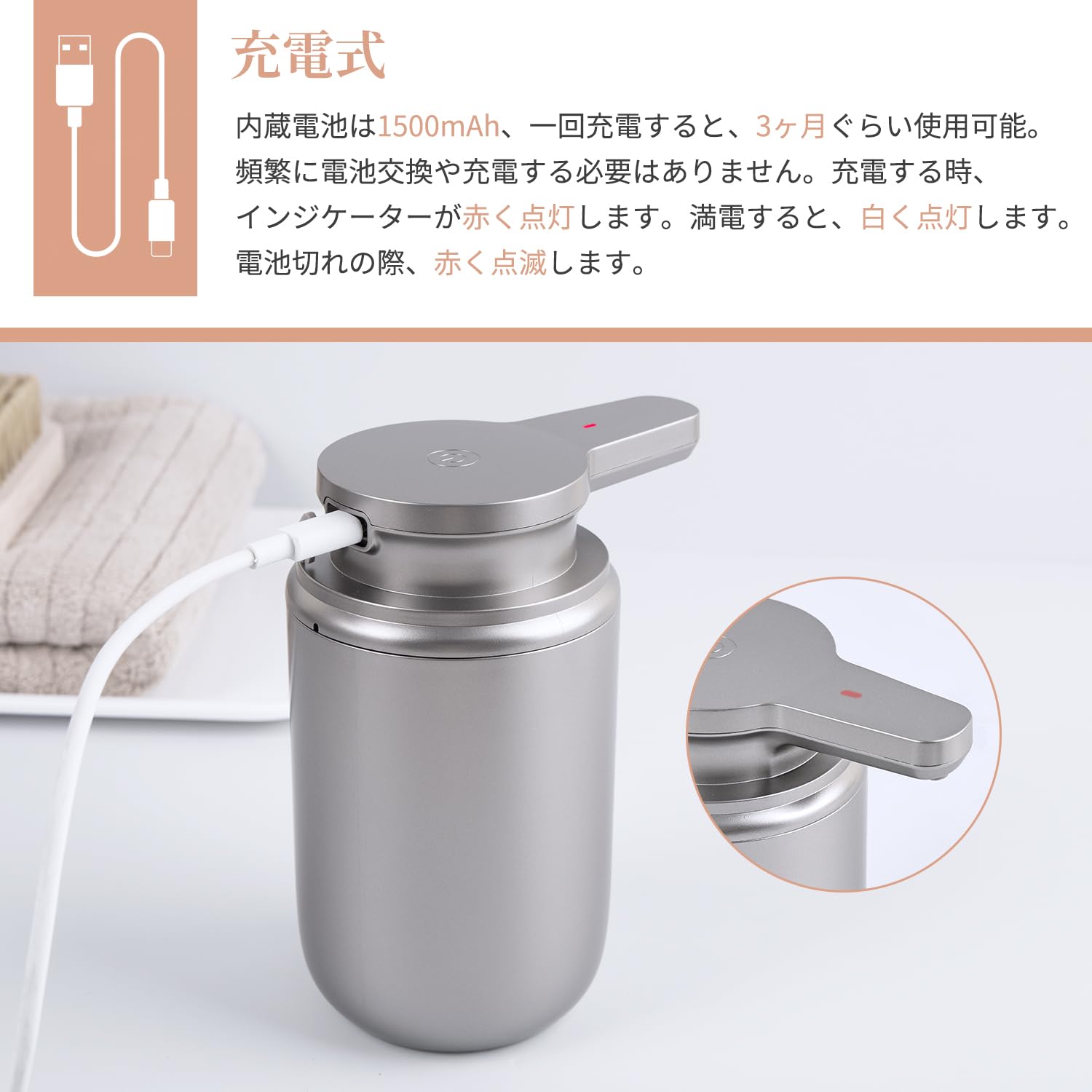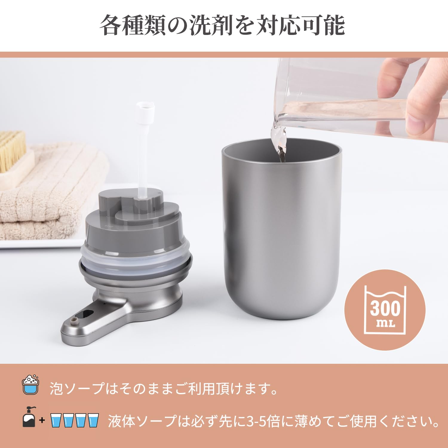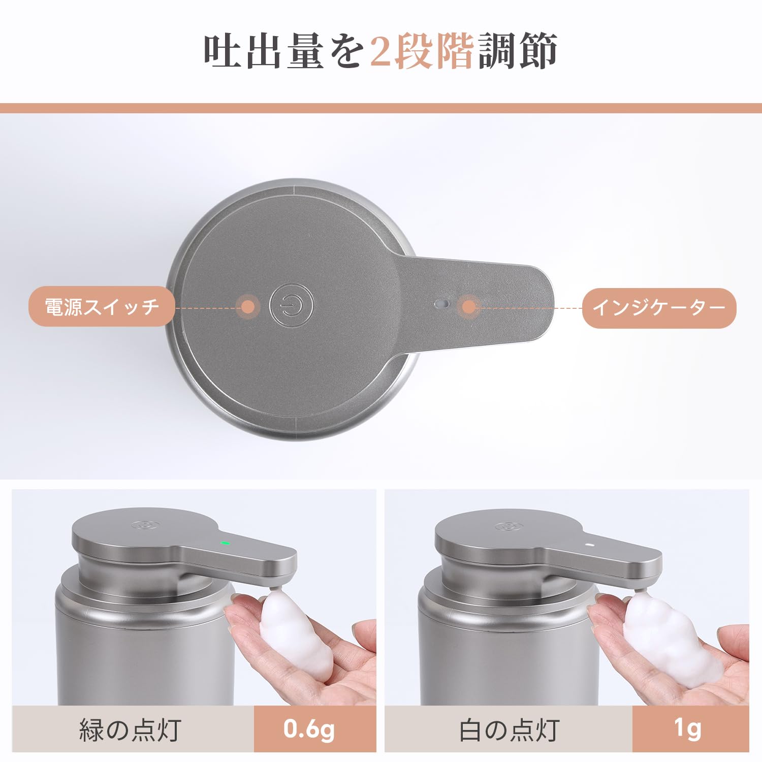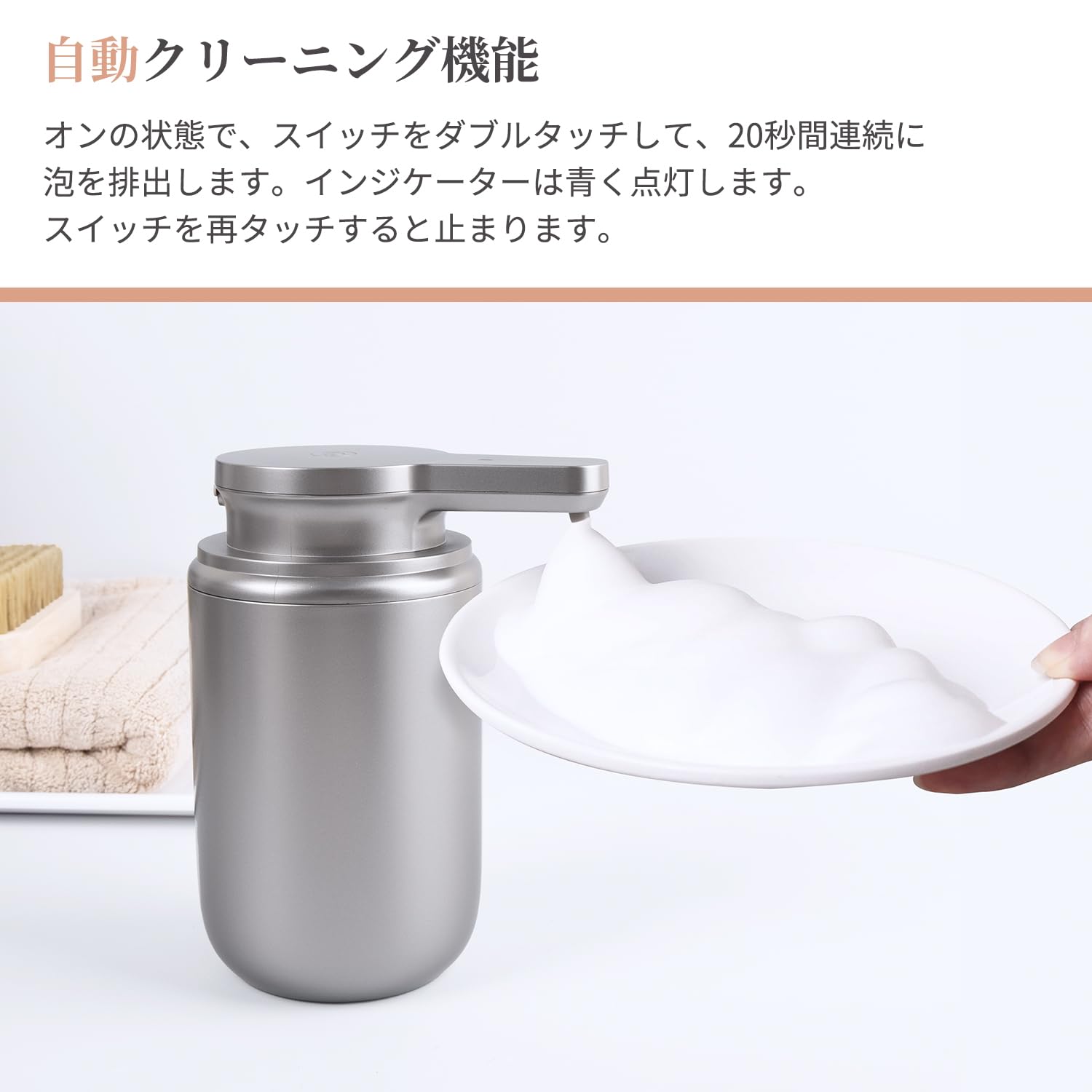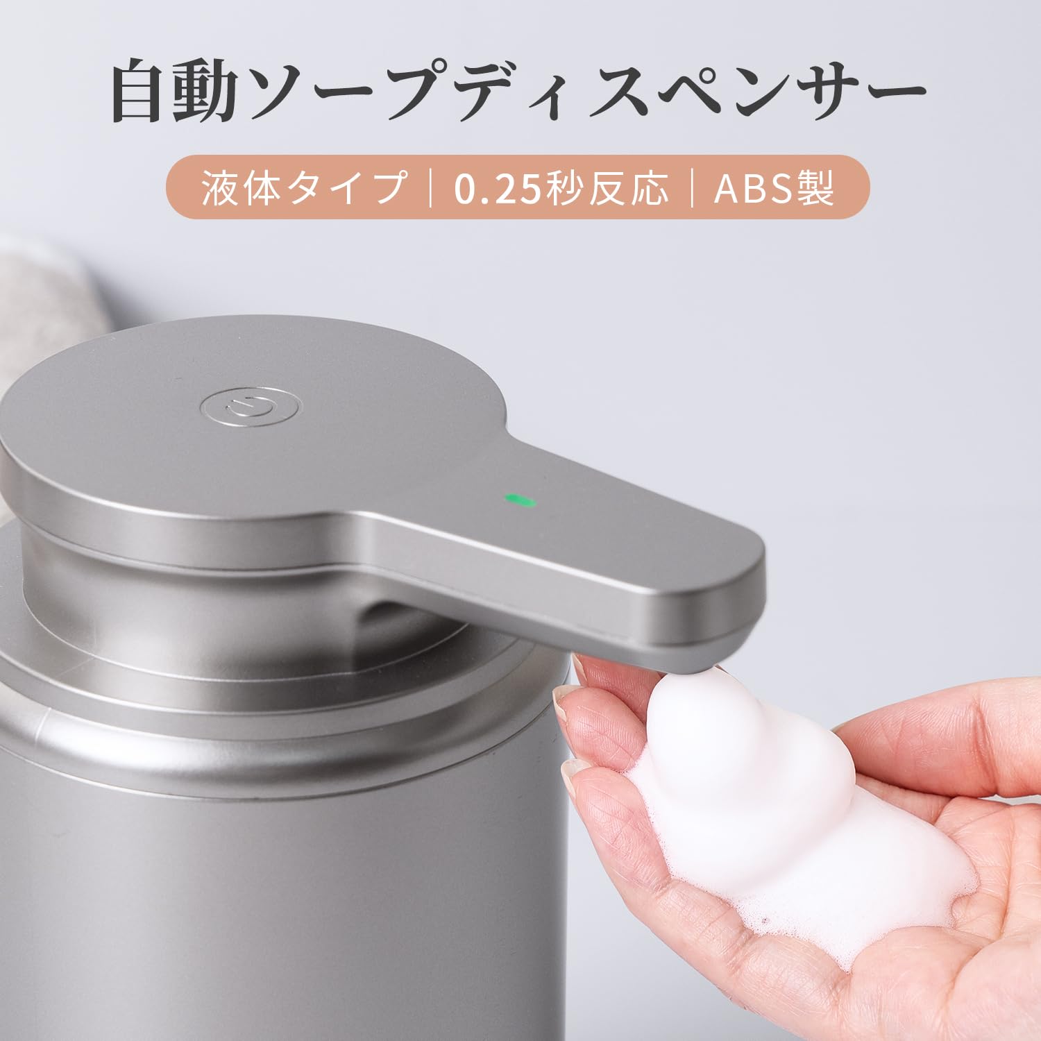 LAOPAO ソープディスペンサー 自動 泡 2段階 手洗い オートディスペンサー 充電式 ハンドソープディスペンサー 食器洗剤 ハンドソープ 台面 トイレ キチン シルバー JS020 plastic silver [並行輸入品]