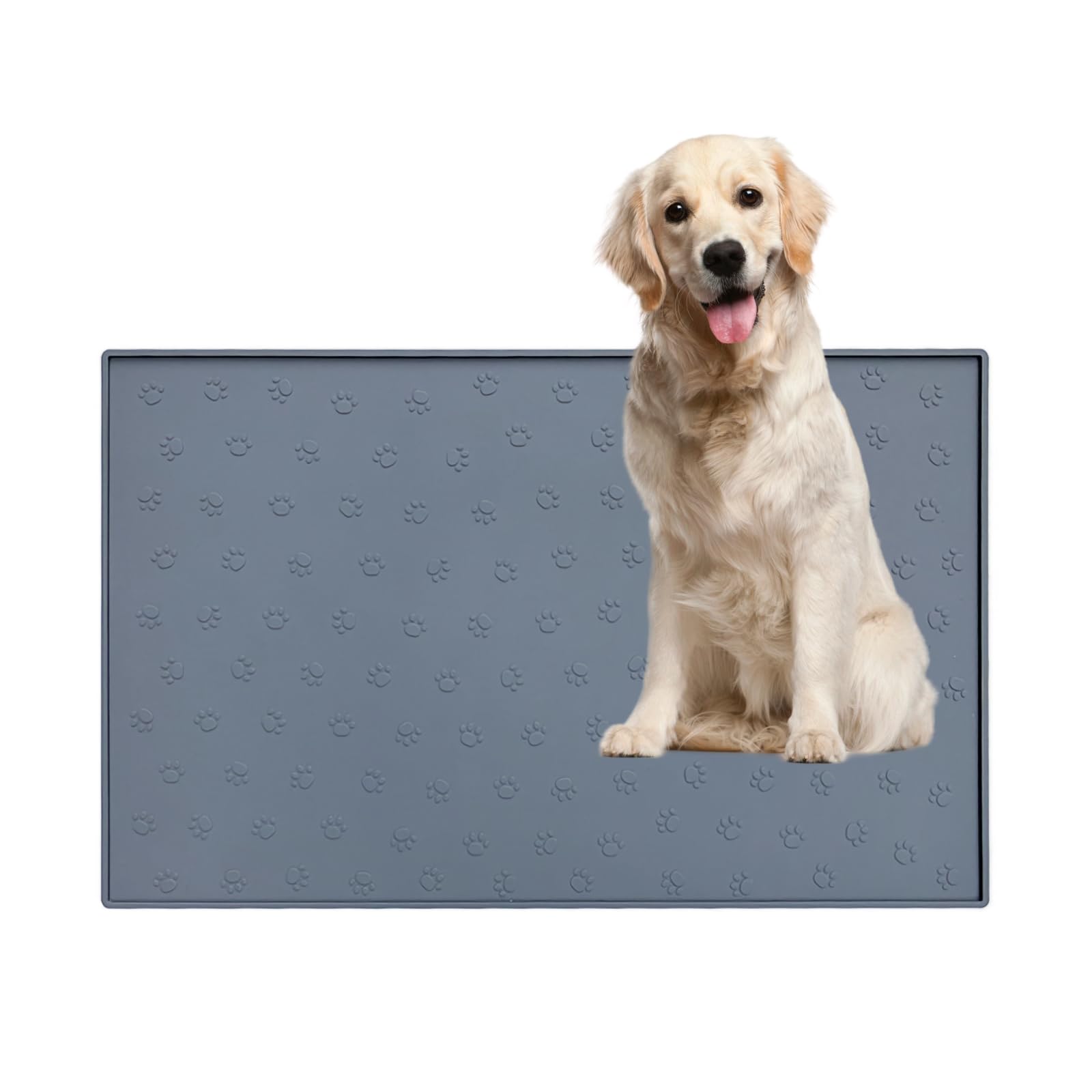Leafberry 犬 トイレトレー シリコン 40x60CM ワイド トイレトレー ワイド 【可愛い肉球柄 &】エッジ加工で漏れ安心 トイレマット ペットシーツ お手入れ簡単 犬用トレイボックス屋内/屋外 (グレー, M)