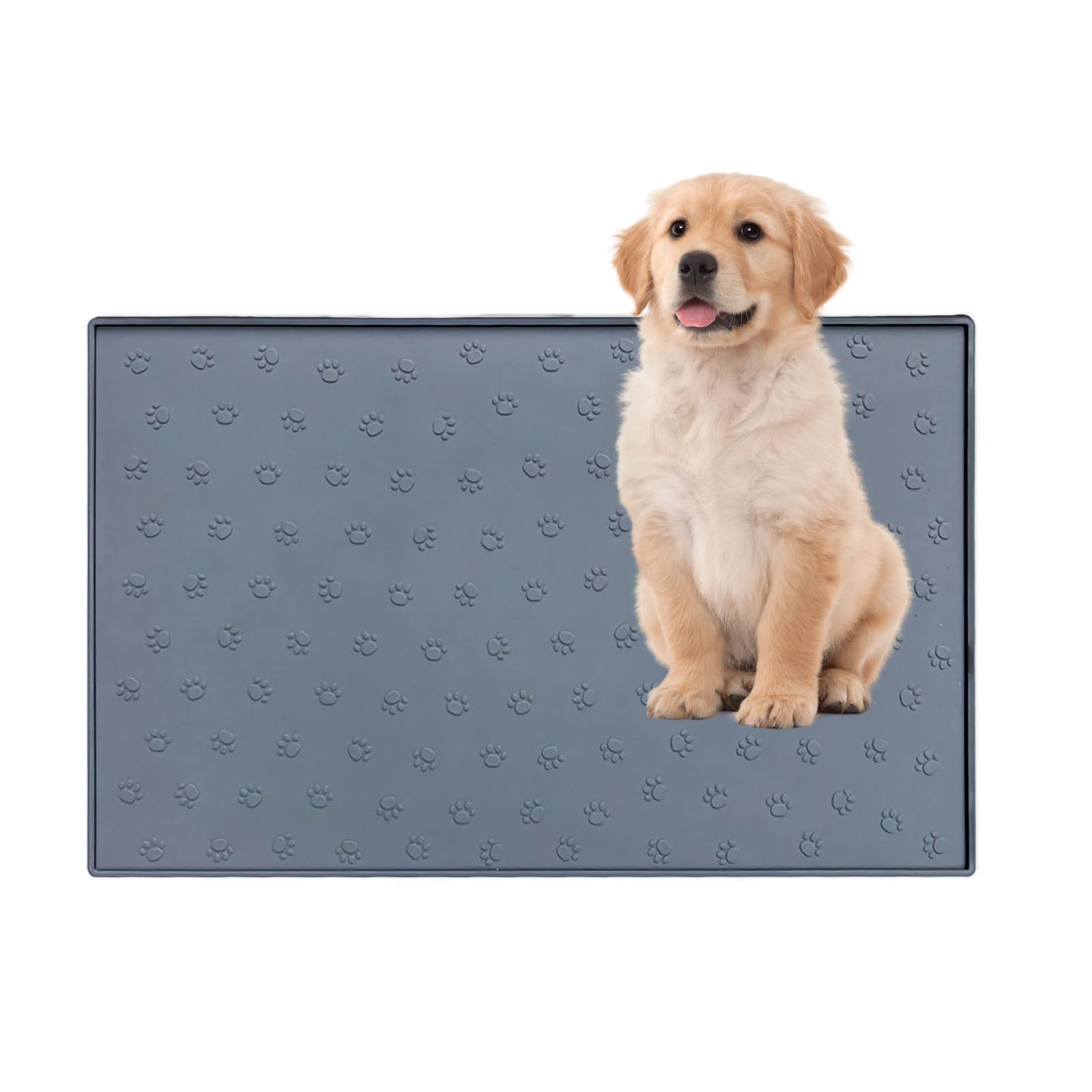 犬用 シリコン トイレトレー&食事マット 可愛い肉球柄 漏れ防止エッジ加工 お手入れ簡単 ペットシーツ兼用 犬・猫対応 固定安定 (48*30cm)