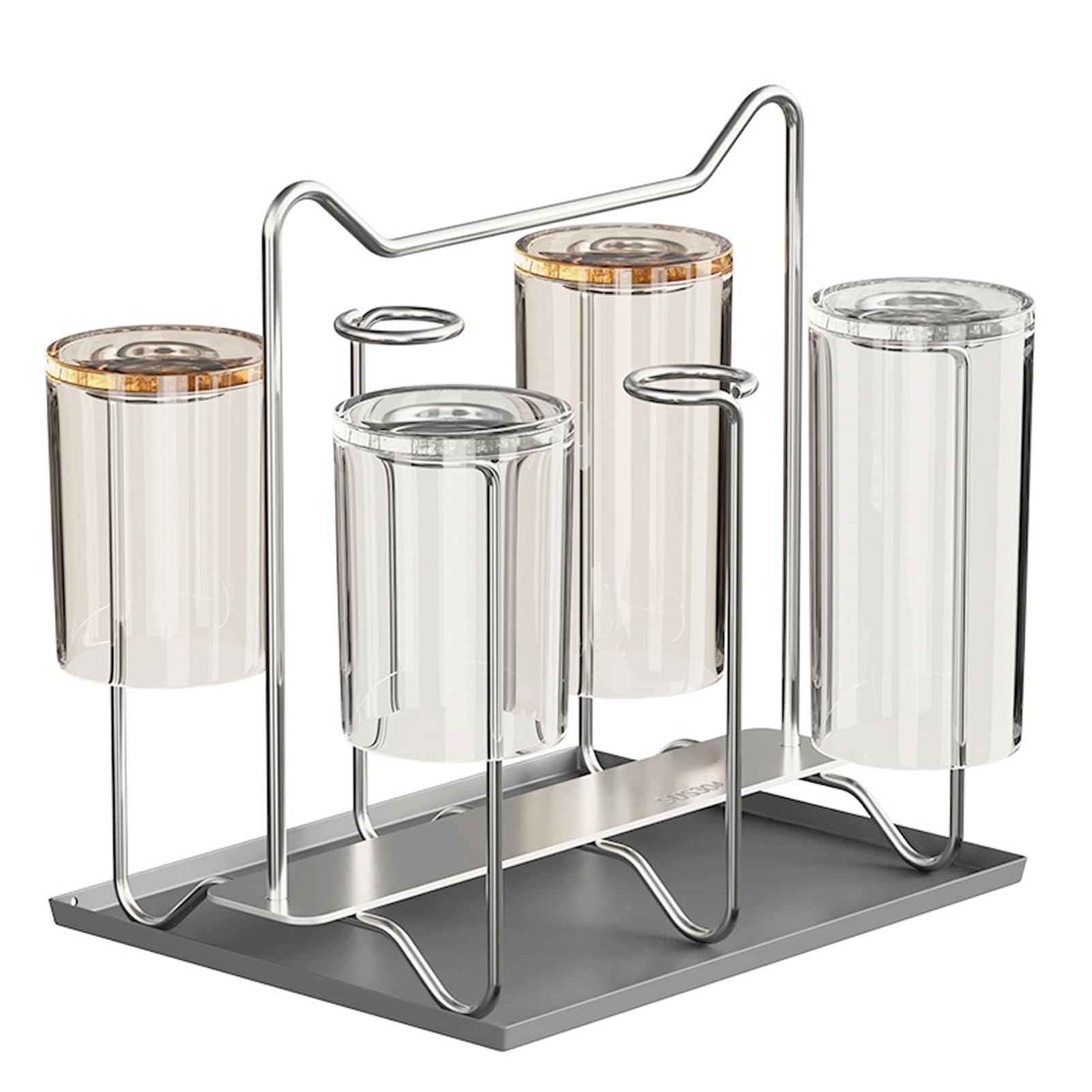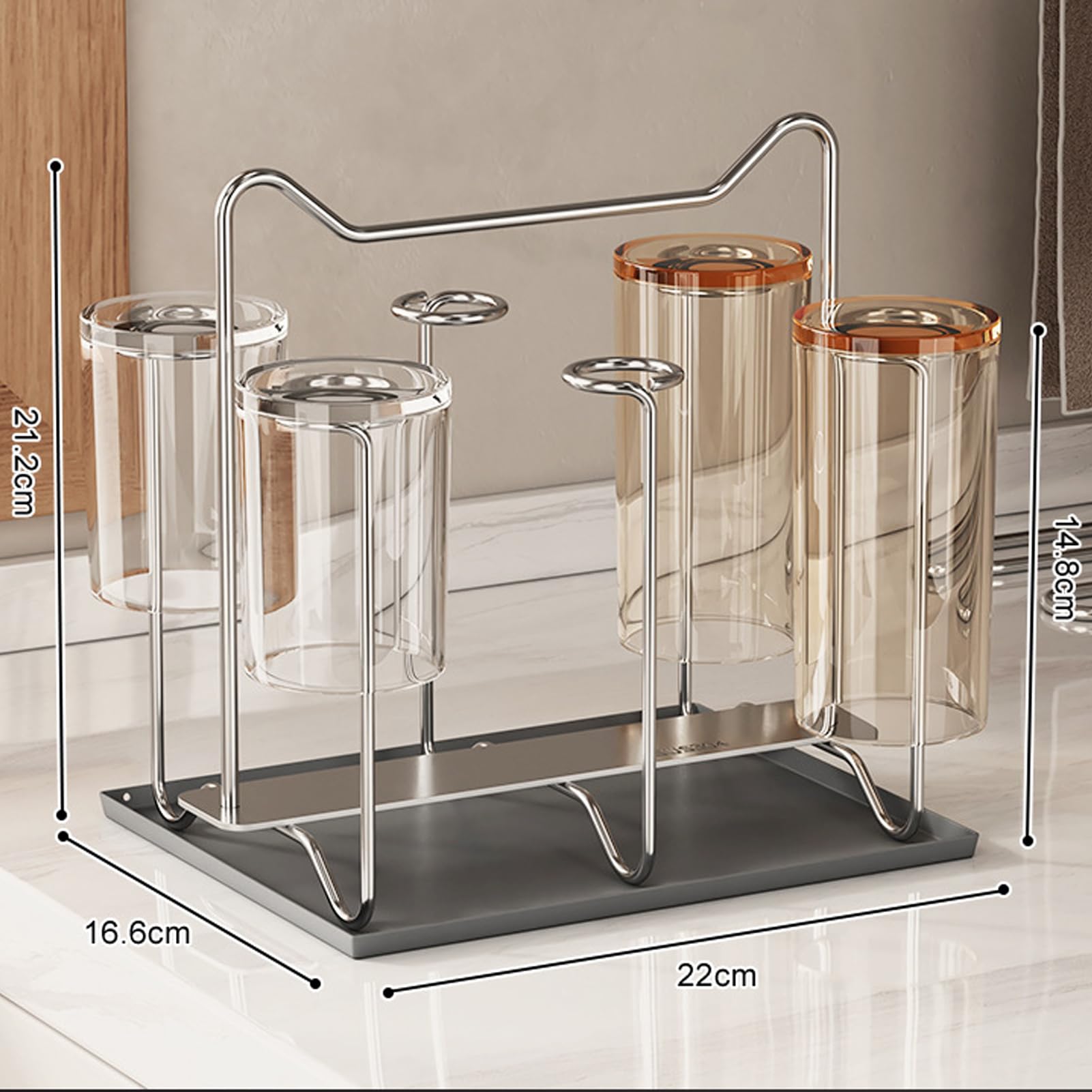 ELECTRO-WEIDEWORLD グラススタンド 6個掛け 304ステンレス製 炭素鋼トレイ付き コップ立て 水切り グラス置き おしゃれ キッチン収納 グラスホルダー (長方形6個タイプ)