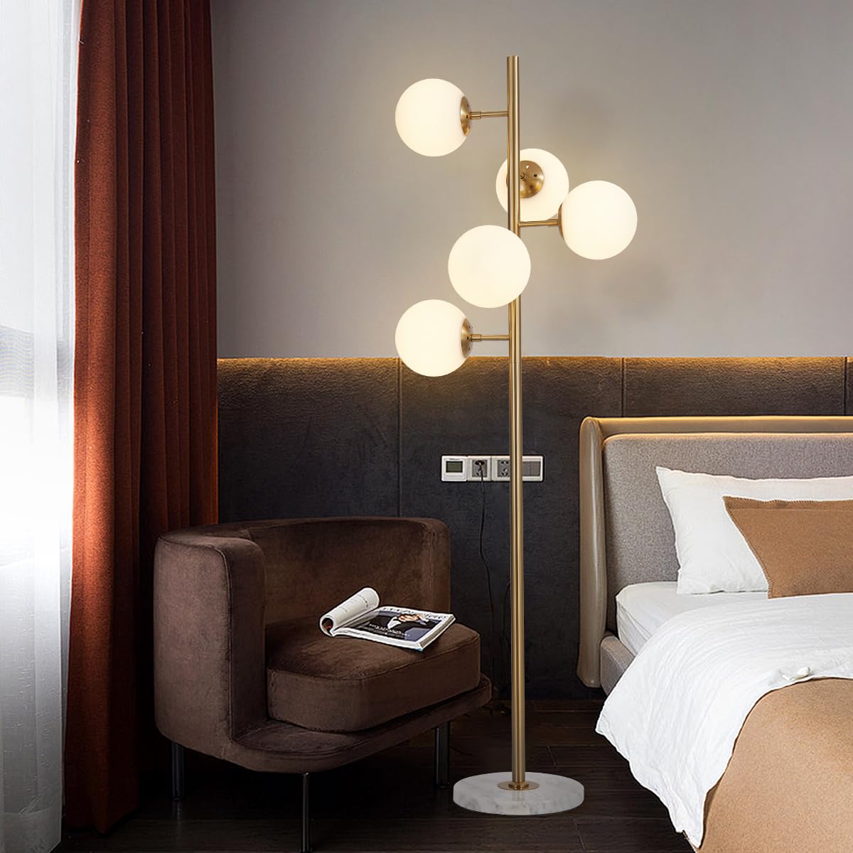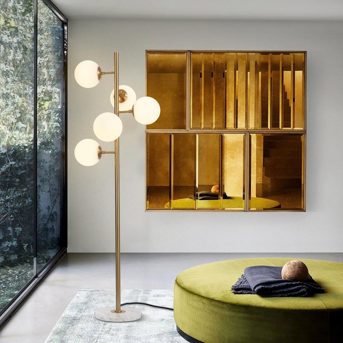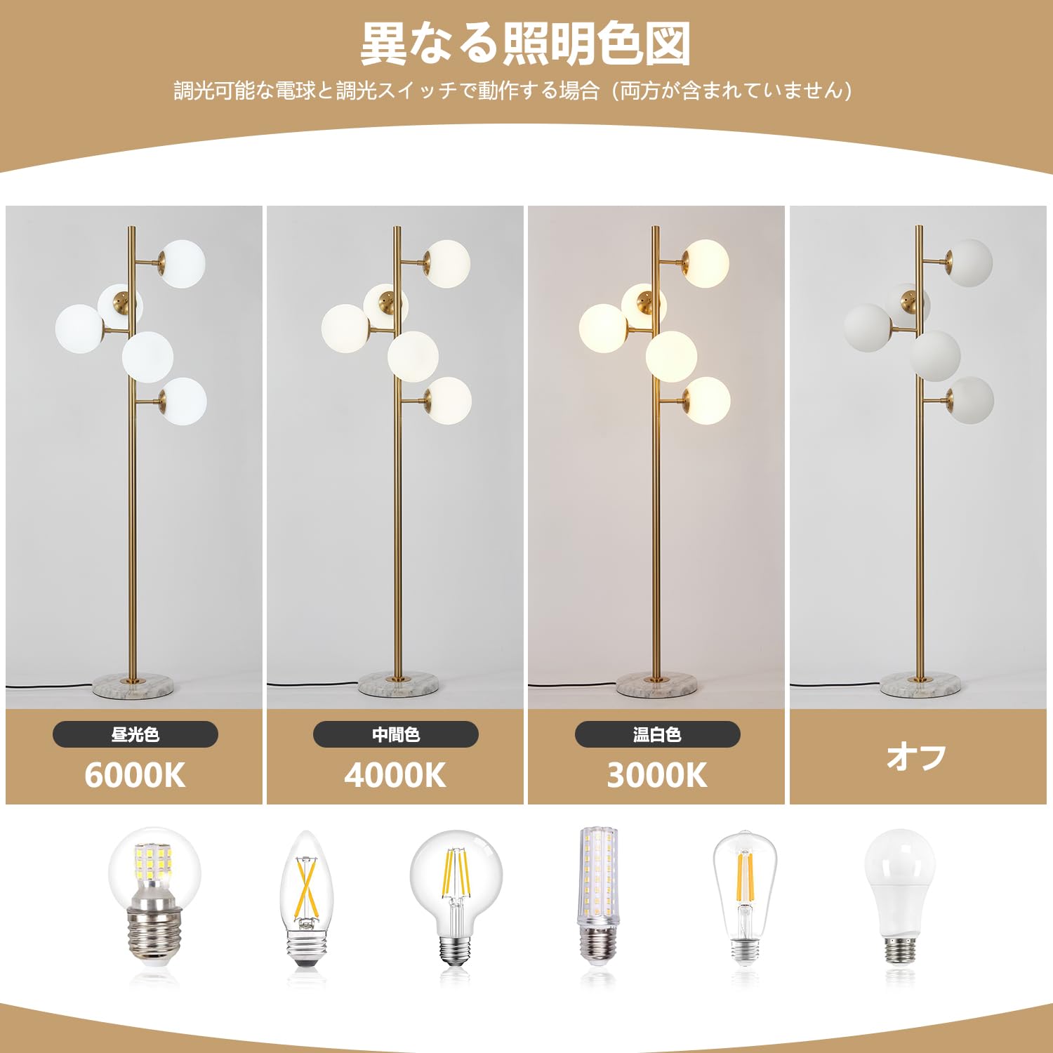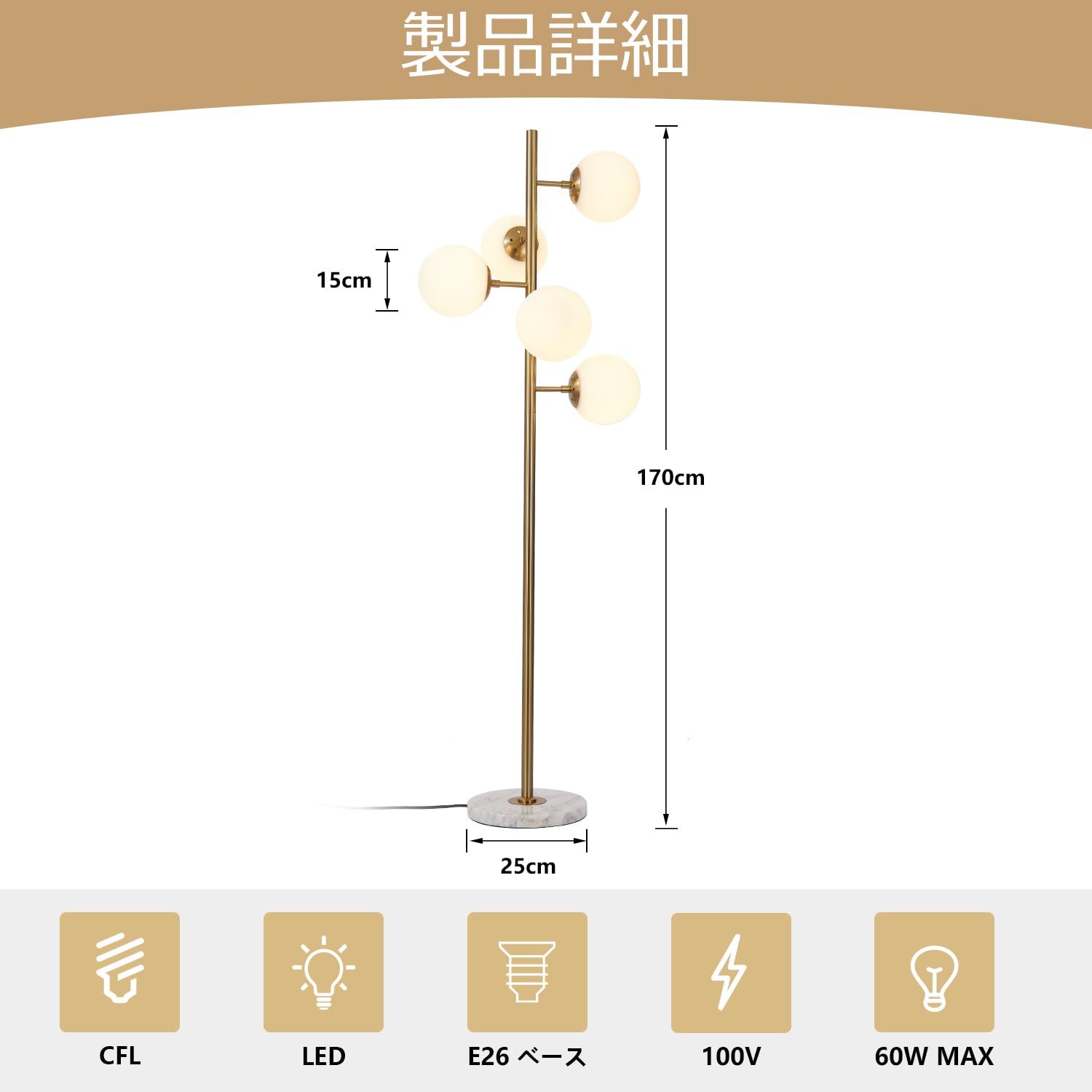 KCO Lighting モダン フロアライト 間接照明 スタンド インテリア 5灯 E26対応 LED 読書ランプ 操作&組立簡単 北欧風 おしゃれ オフィス 寝室 リビング(ゴールド+ホワイト) 電球付き