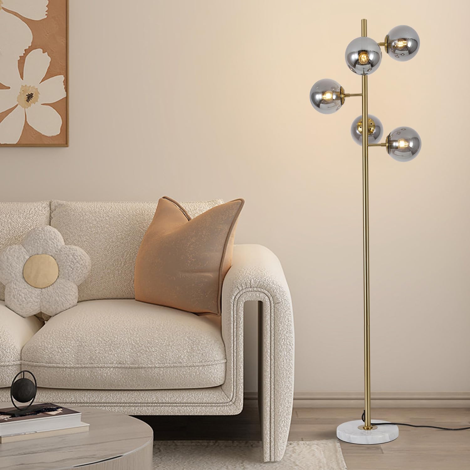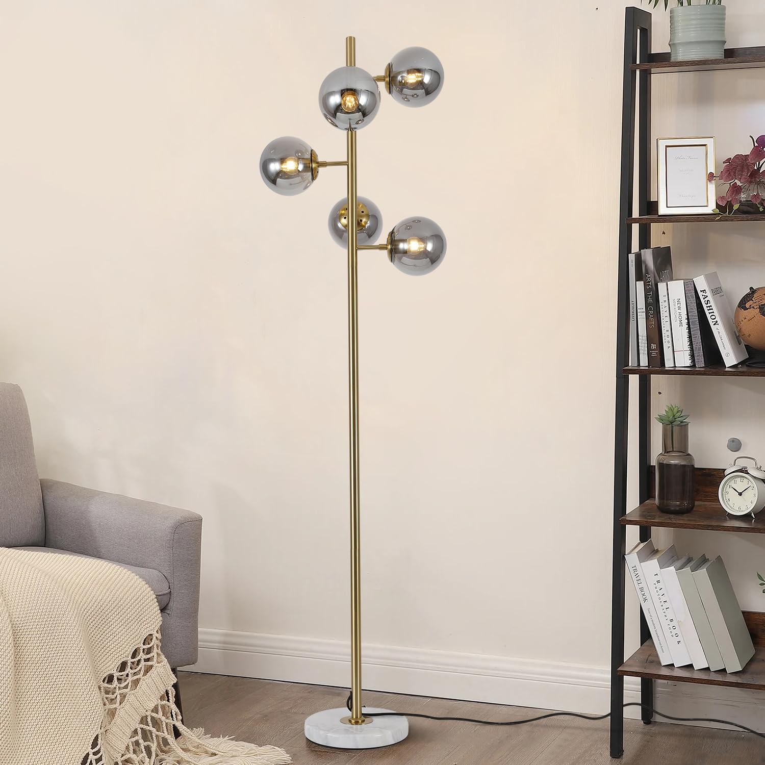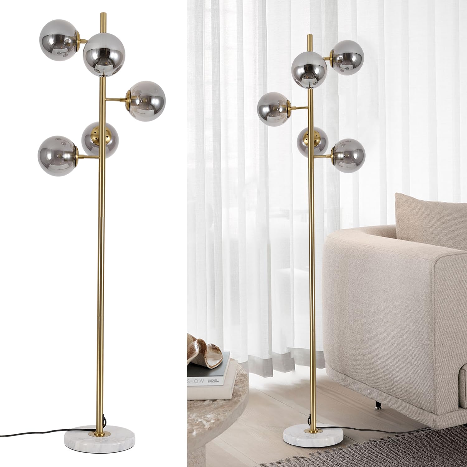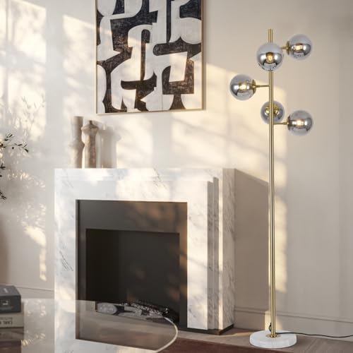 KCO Lighting モダン フロアライト 間接照明 スタンド インテリア 5灯 E26対応 LED 読書ランプ 操作&組立簡単 北欧風 おしゃれ オフィス 寝室 リビング (ブラック+スモークグレー) 電球付き