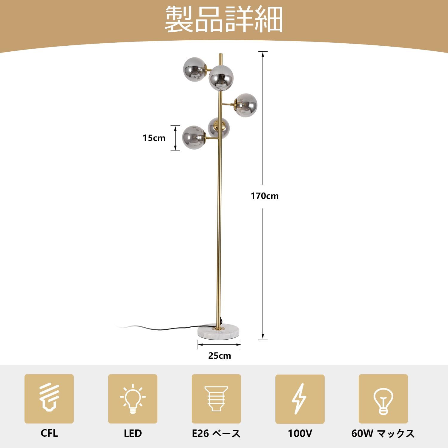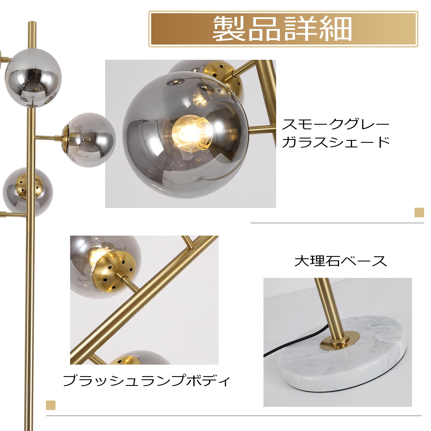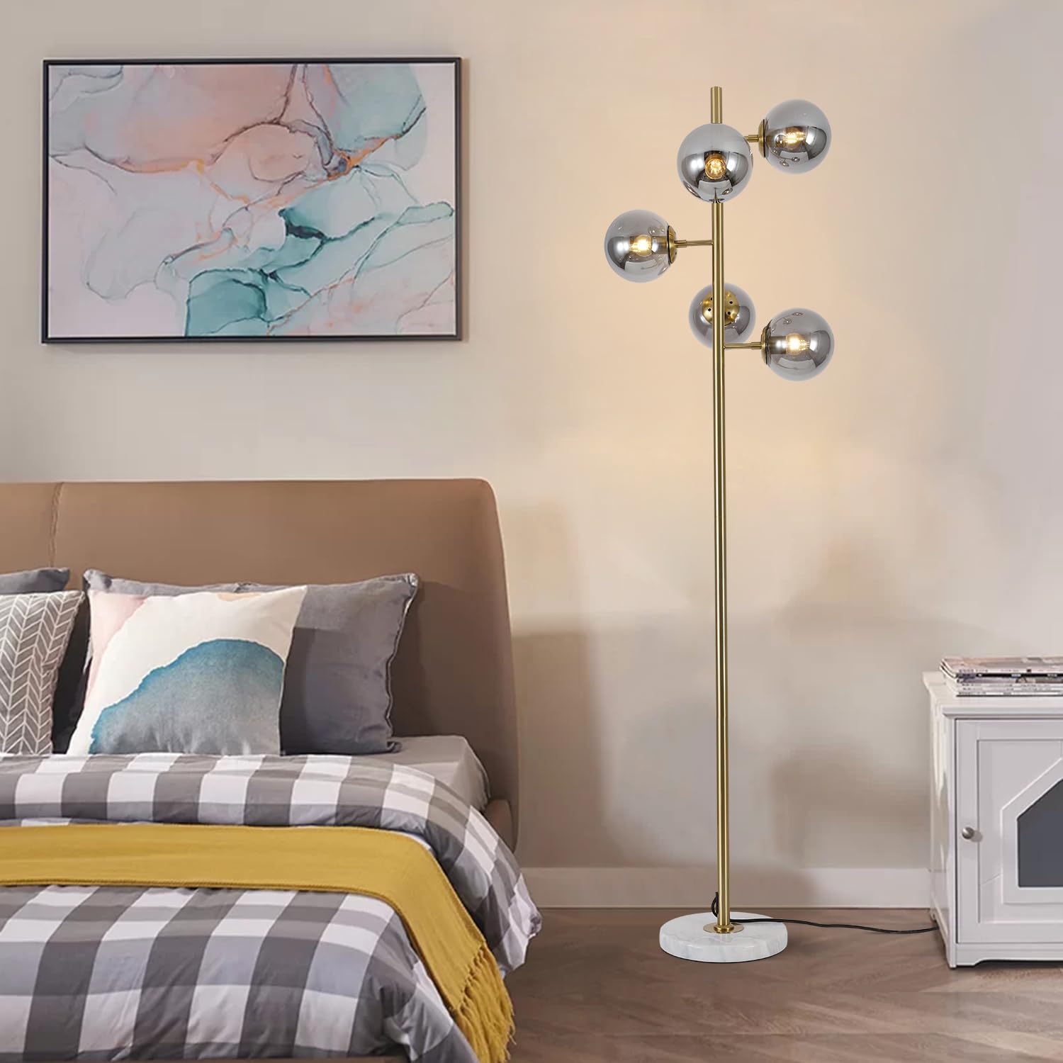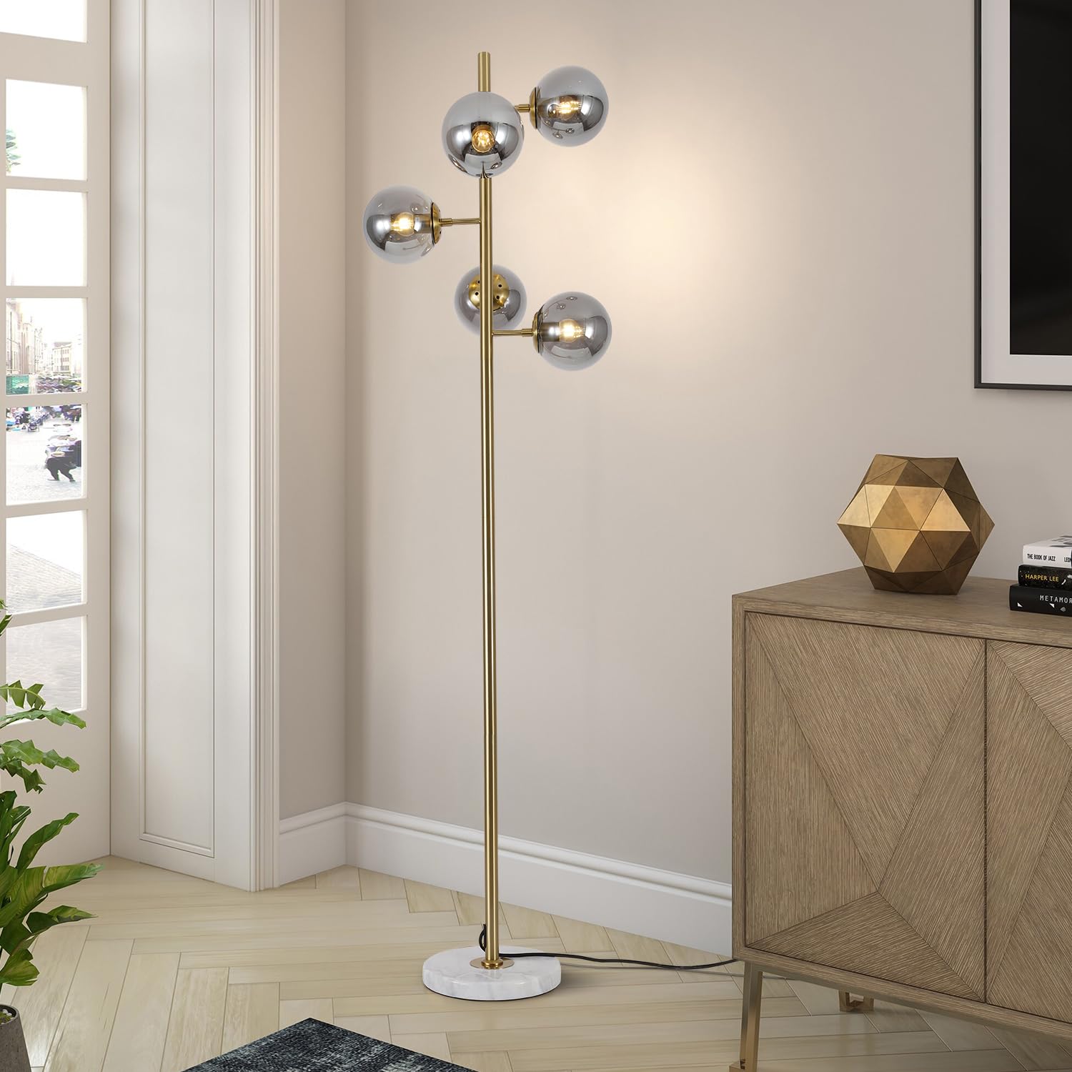 KCO Lighting モダン フロアライト 間接照明 スタンド インテリア 5灯 E26対応 LED 読書ランプ 操作&組立簡単 北欧風 おしゃれ オフィス 寝室 リビング (ブラック+スモークグレー) 電球付き