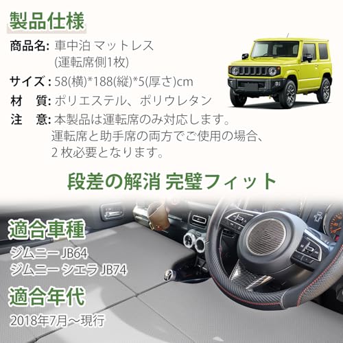 車中泊 マット ジムニー ジムニーシエラ JB64 JB74 専用 AT車 MT車 対応 折り畳み式 マットレス 高密度ウレタン 水洗い可 防汚 軽量 通気性 快適睡眠 防災 2018年7月〜現行 ポリエステル 運転側