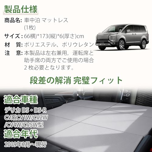 車中泊 マット デリカ D5 折り畳み式 マットレス 車用 ベッドキット高密度ウレタン 水洗い可 防汚 軽量 通気性 段差解消 快適睡眠 防災 DELICA D5 CV1W CV2W CV4W CV5W 2019年2月~ 助手席/運転席併用 1枚入り