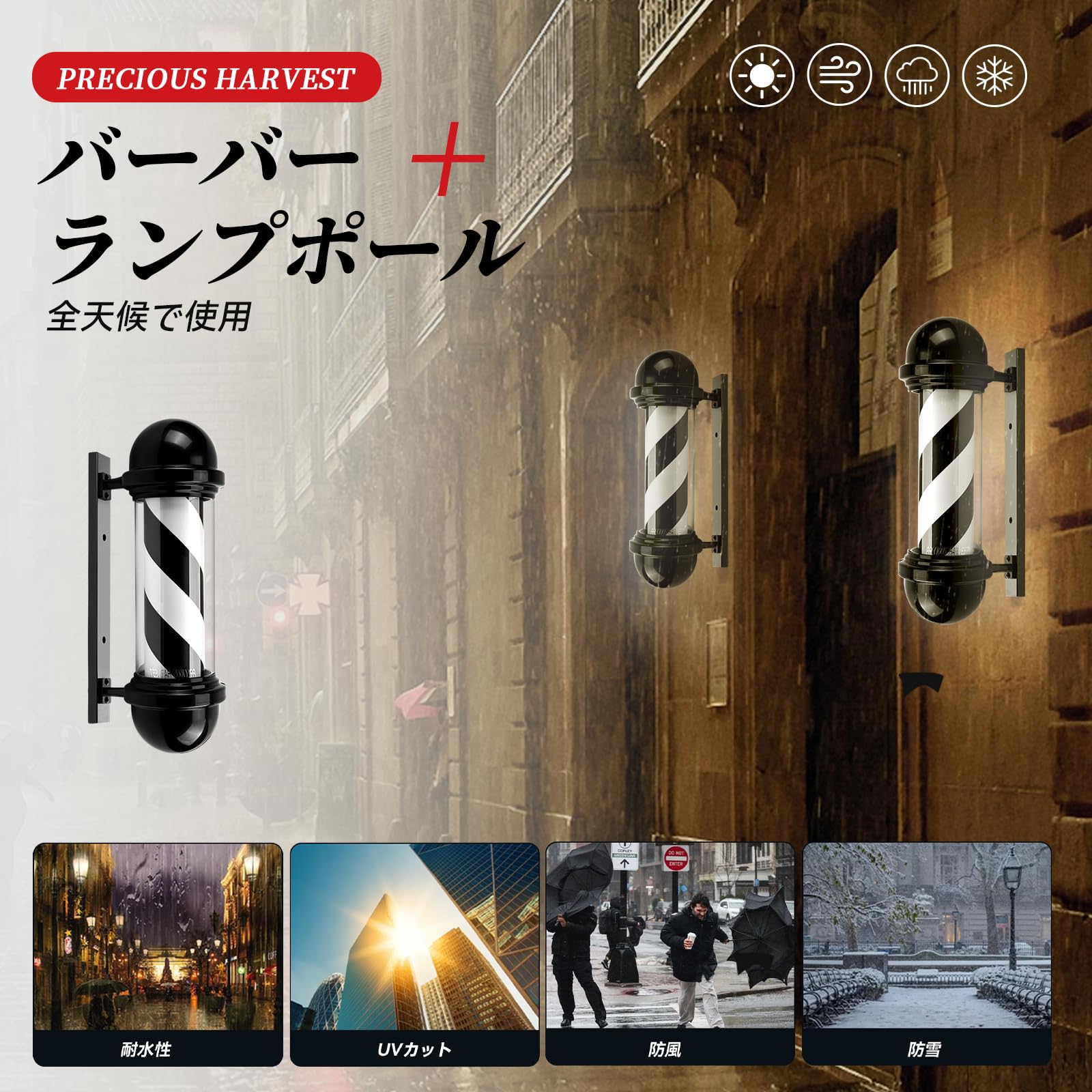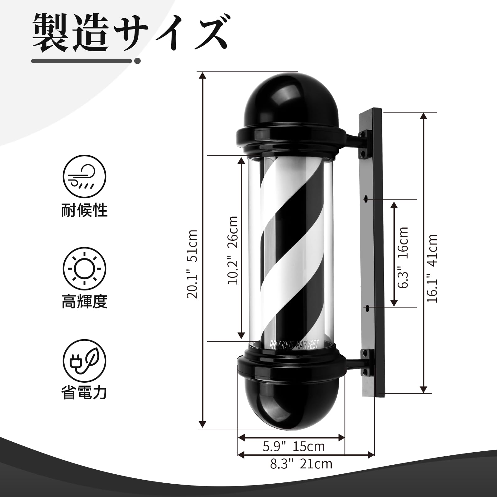 Precious Harvest 58cm省エネ 壁掛け式 赤白青ストライプ 耐久性ある床屋サインポール