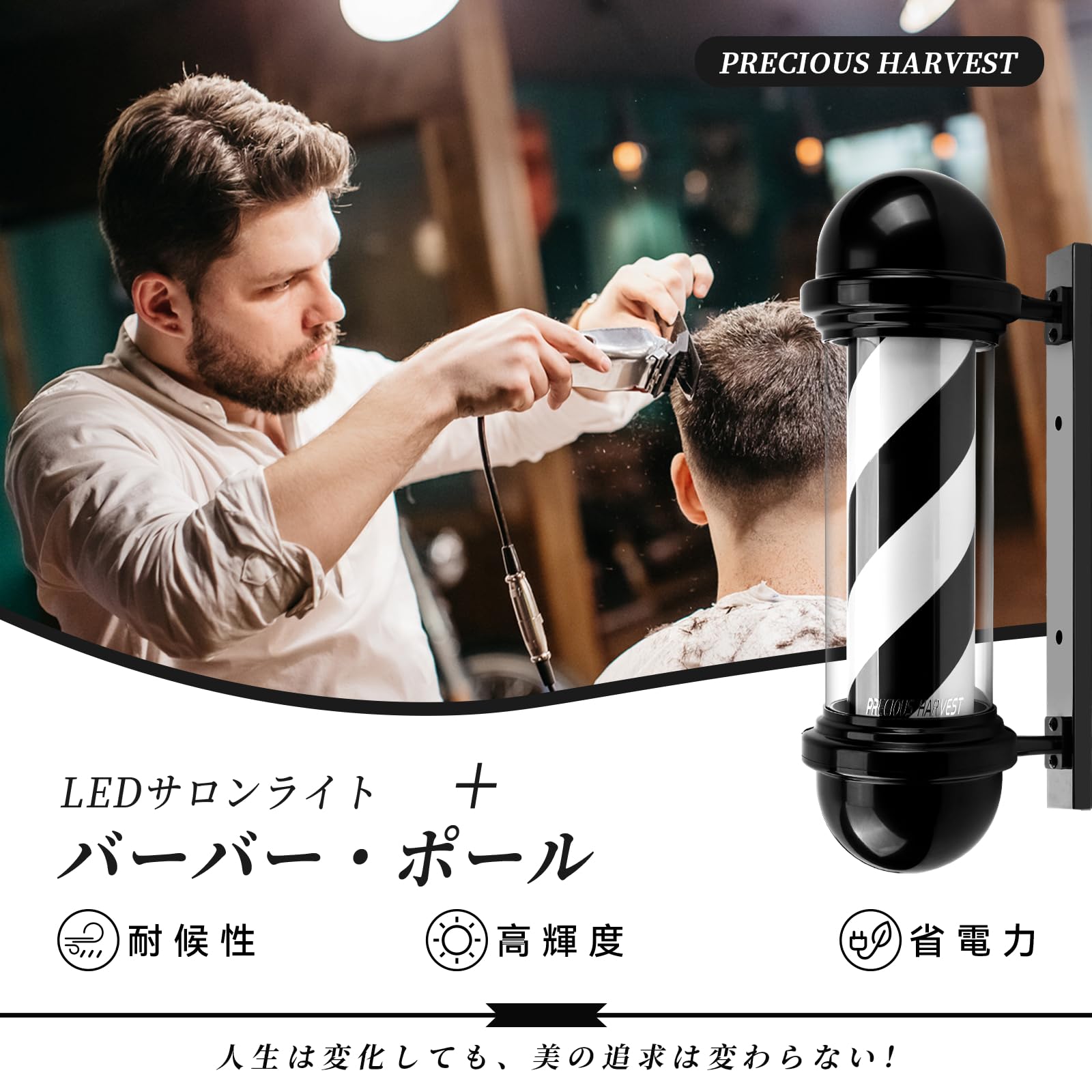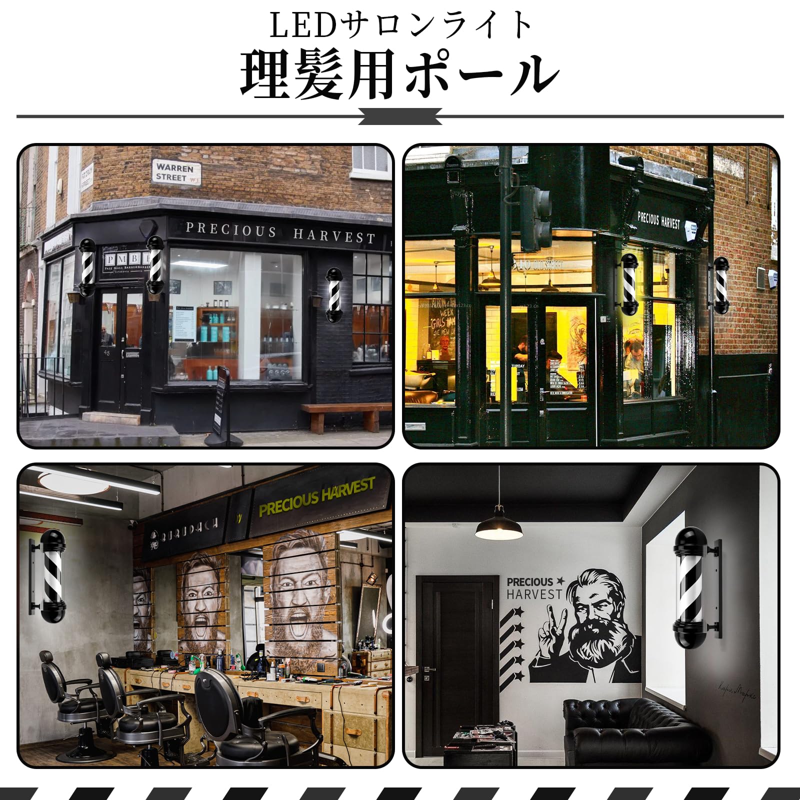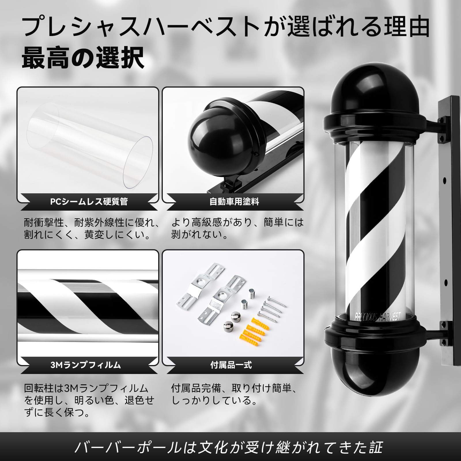 precious harvest 50cm 理髪師のポーランド人、赤青および白い理髪店の回転照明設備、ヘアーサロン、LED の光源のための古典的な印 (黒色)