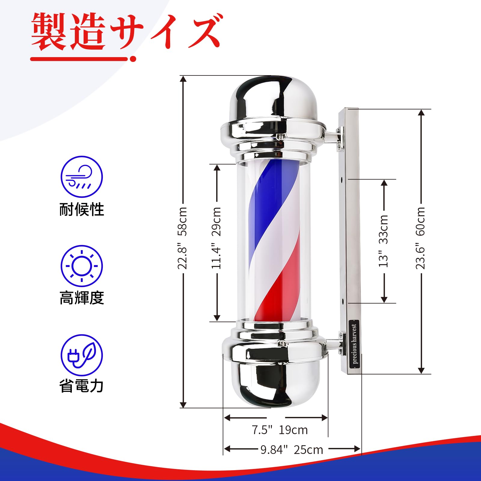 Precious Harvest 58cm省エネ 壁掛け式 赤白青ストライプ 耐久性ある床屋サインポール