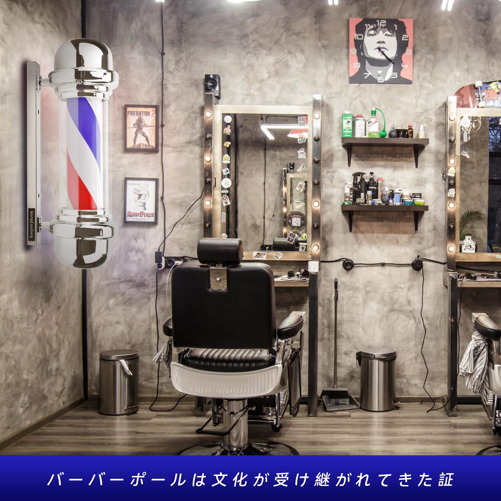 precious harvest 50cm 壁掛け式赤青白ストライプ床屋回転照明、黒/金/銀カバー選択、LED省エネ光源、クロム加工 (銀色)