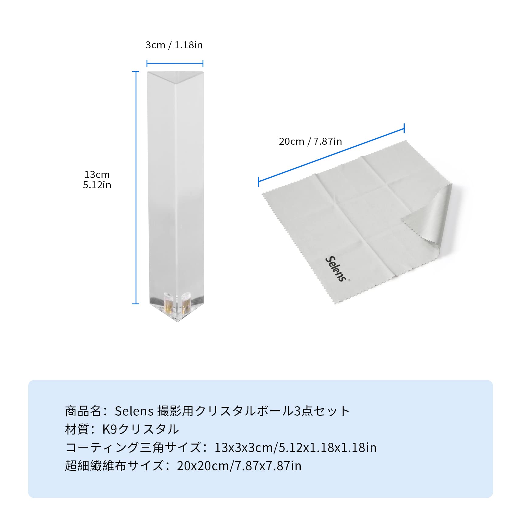 Selens クリスタルボール 三角プリズム 立方体 1/4ネジ付き プリズムボール 表面コーティング レインボー 影重ね効果 水晶球 水晶玉 撮影道具 アクセサリー/ギフトに 3点セット 拭き取り布付き