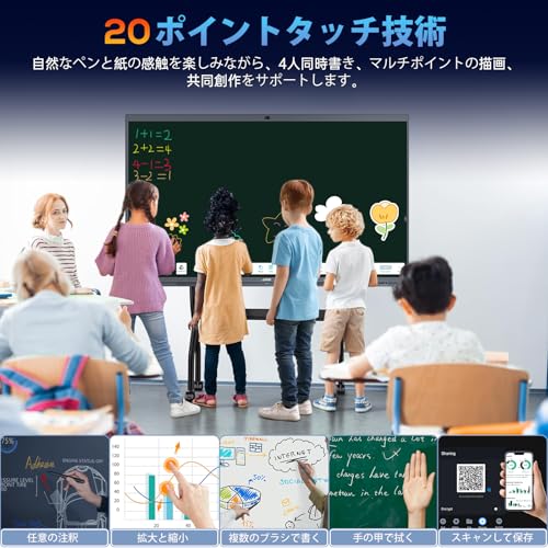 JAV 電子黒板 スマートボード 65インチ 4K UHD Android 14 インタラクティブ ホワイトボード Google EDLA認証 8+128GB 4800万画素カメラ内蔵 電子ホワイトボード 大型 多機能 デジタルタッチパネル 教室 オフィス 家庭用 日本語対応 (65インチ)