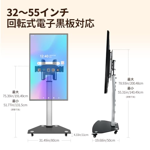 JAV 電子黒板 スタンド 電子ホワイトボード スタンド 32-55インチ 回転・移動式 インタラクティブ ホワイトボード 専用スタンド キャスター付き 大型 ライブルーム 学校 オフィス 家庭用 (スタンドのみ)