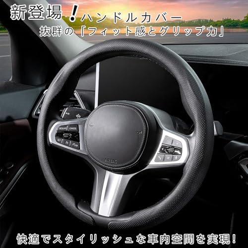 Vixplornハンドルカバー 車用 ステアリングカバー 汎用 汚れ防止 滑り防止 オールシーズン対応 保護カバー 取付簡単 イズ 触感よく 通気性いい 細巻きタイプ おしゃれ 高級 内装パーツ 車用品 アクセサリー(ブラック ) (レザーとメッシュ)