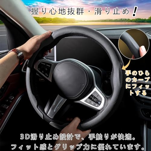 EIING ハンドルカバー 車用 軽自動車 sサイズ 3Dグリップ 滑り止め ステアリングカバー 汎用 おしゃれ 通気性がよい 普通車 ハンドル 保護カバー 高級 内装パーツ 車用品 アクセサリー オールシーズン対応 円形 37~38CM (ブラック)