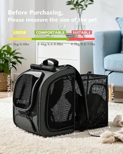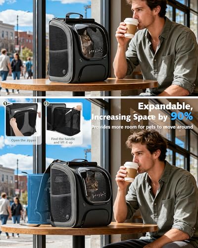 TerraShine ペット キャリーバッグ リュック ペットハウス ケージ メッシュ窓 拡張可能 通気性 折り畳み 2WAY 引っ掻き傷に強い 耐荷重 約15kg お出かけ ドライブ 旅行/通院/避難用 猫用 犬用 (グレー)