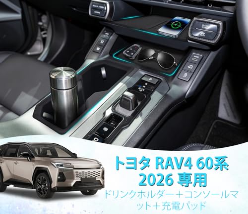 トヨタ RAV4 60系(2026)右ハンドル専用 ドリンクホルダー+シリコン製センターコンソールマット+ワイヤレス充電パッド 3点セット 滑り止め・防水・防汚 車種専用設計 内装アクセサリー [並行輸入品]