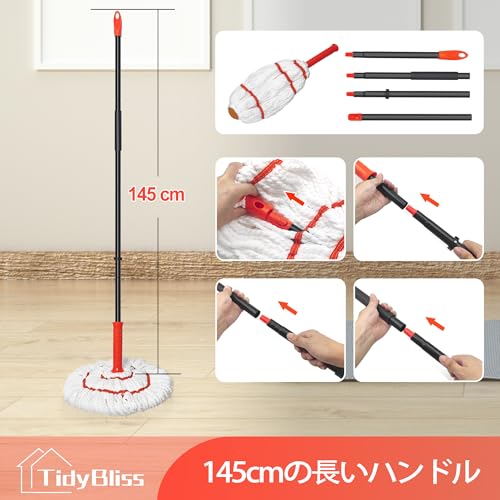 TidyBliss 乾湿両用モップ 回転,145cm ロングハンドルマイクロファイバーモップ,洗える再利用可能フロアモップ(研磨パッド付き)硬質床材・タイル・浴槽・キッチン用