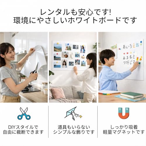 Happyee ホワイトボート シート ホワイトボード ホワイトシート 粘着式 マグネット対応 壁に貼り付け はがせる 自由に裁断 予定表 こども落書き 掲示板 メモー用に対応