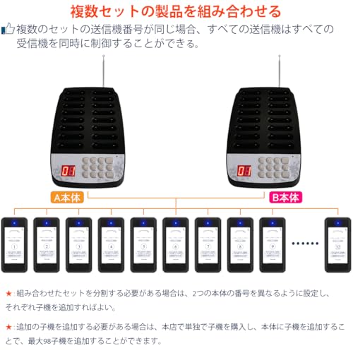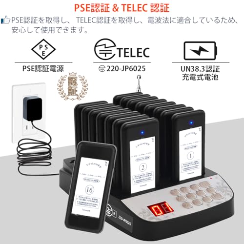 Tomarsy 呼び出しベル 受信機 (子機) 16台 セット [電波法適合] 飲食店 フードコート 病院 業務用 卓上 呼出ベル 呼び出し機 ワイヤレス チャイム 呼び鈴, 日本語