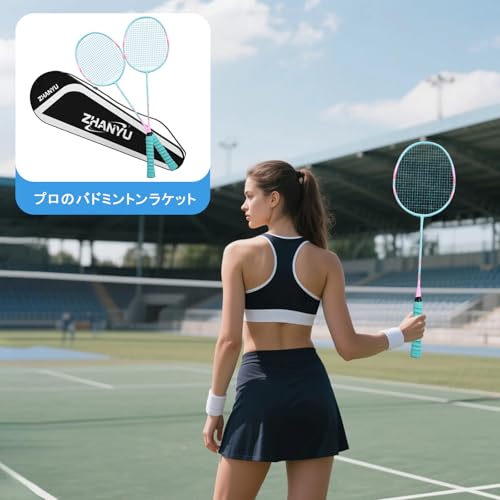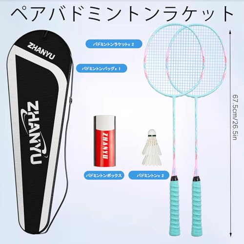 バトミントンセット バドミントン ラケット 軽量炭素繊維 2つのバドミントンラケットと2つのバドミントンと1つのバッグを含み、 アウトドアや家族旅行に適しています