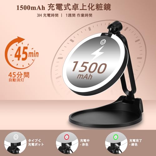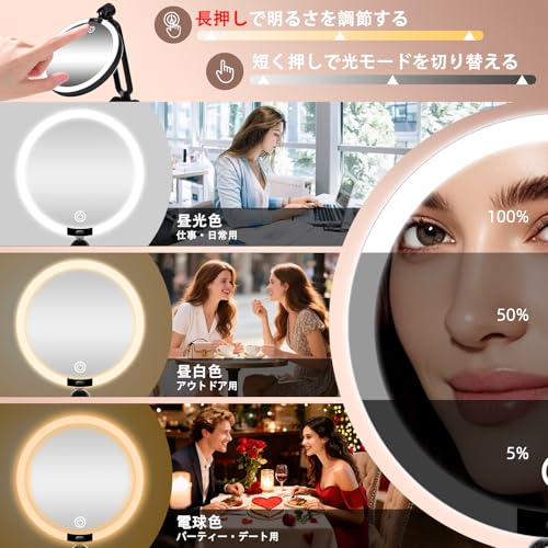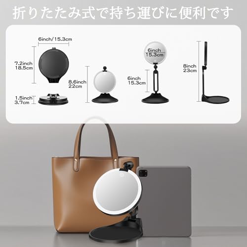 鏡 卓上 女優ミラー 折立鏡 LEDライト付き 3光色 折り畳み式 明るさ無段階調光 (ホワイト 1X&20X)