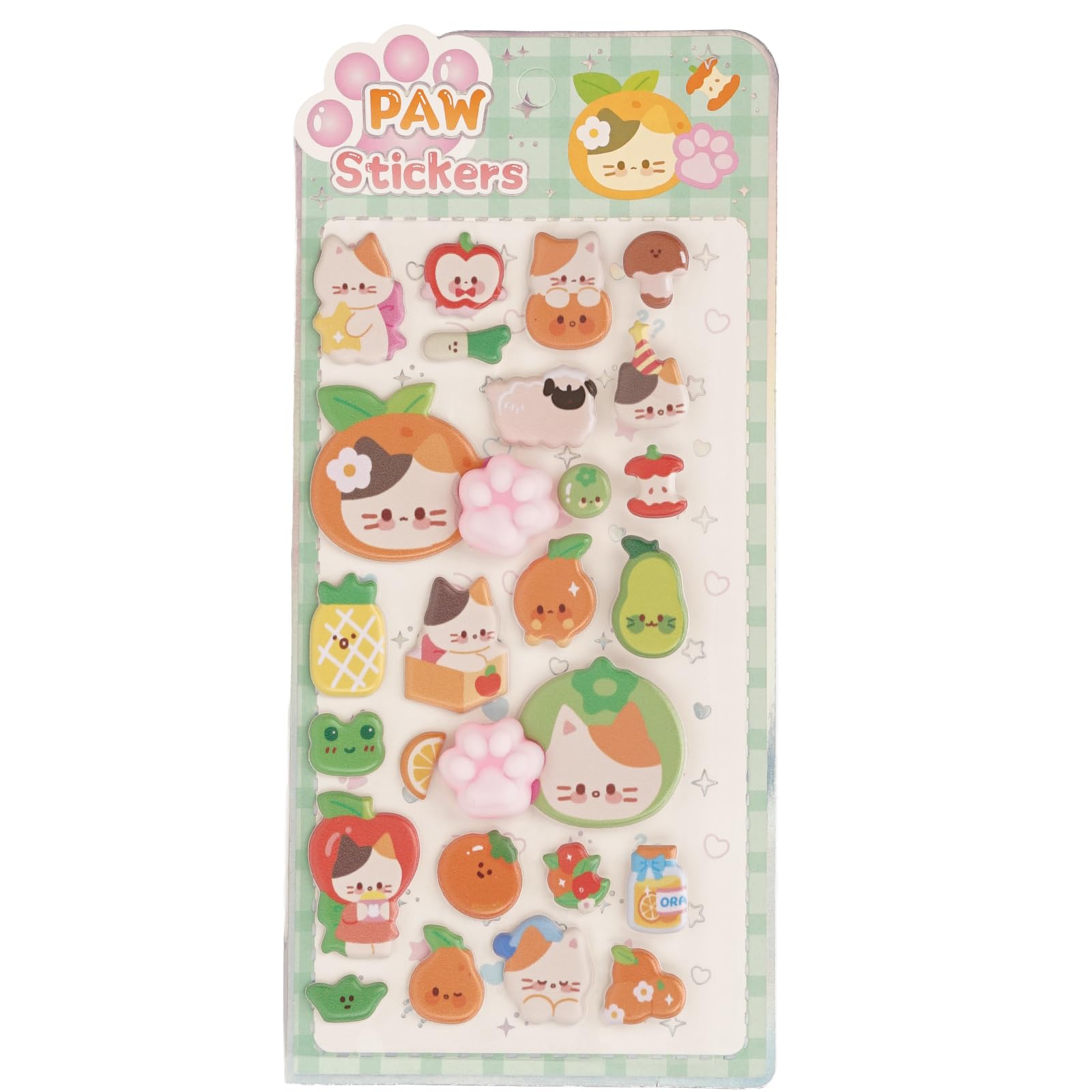 ぷにぷにシール ねこぷに ぷくぷく 3D 立体 ステッカー 猫の肉球型 可愛い マシュマロ スクイーズ風 ぷにぷに触感 ストレス解消 手帳デコ スマホケース 文房具 かわいい 動物シール 重複なし (フルーツねこ)