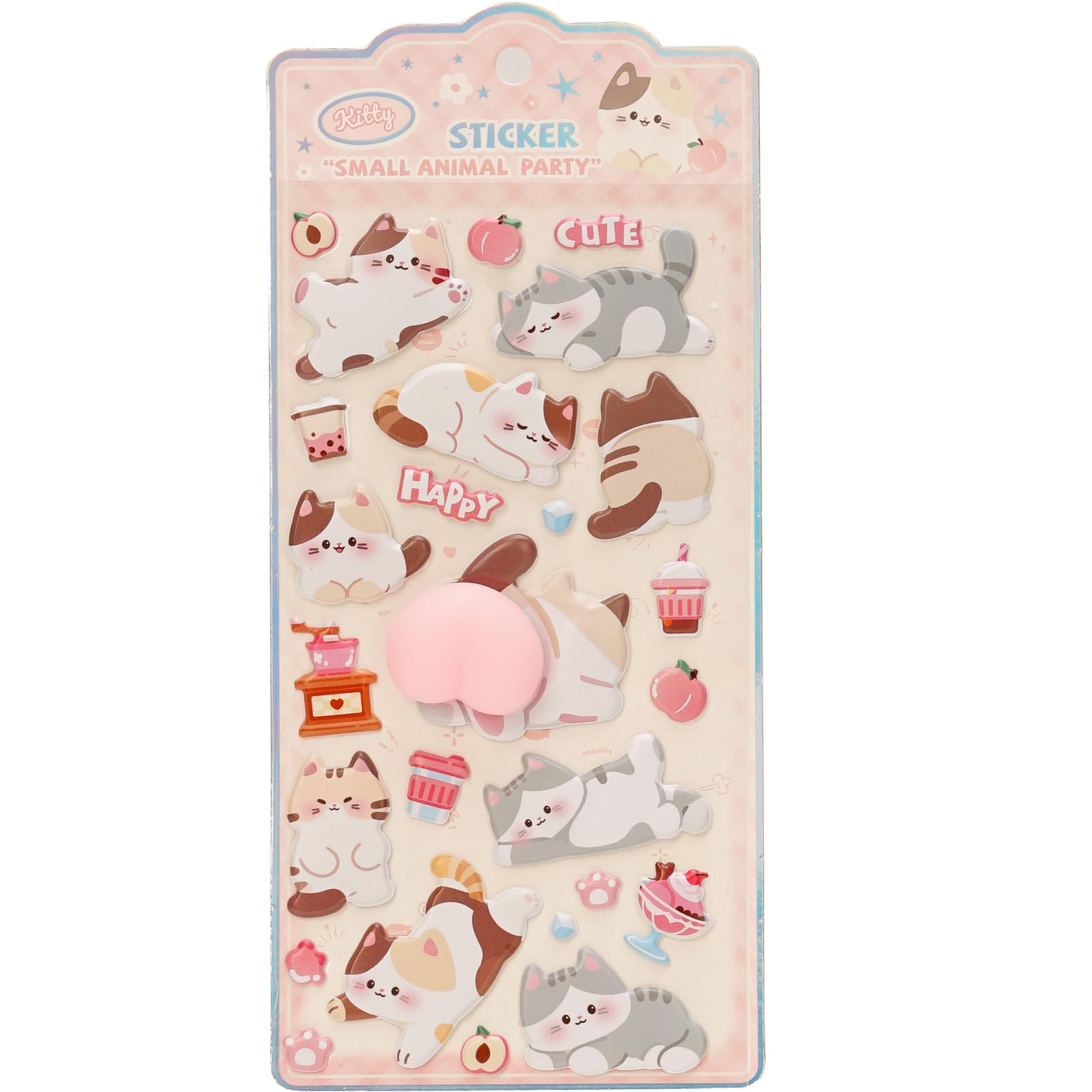 おしりシール ぷにぷに 桃尻 ハート型 スクイーズ風 3D 立体シール ぷにぷに触感 ストレス解消 手帳デコ スマホケース かわいい 動物 いぬ くま ねこ パンダ 重複なし (子猫)