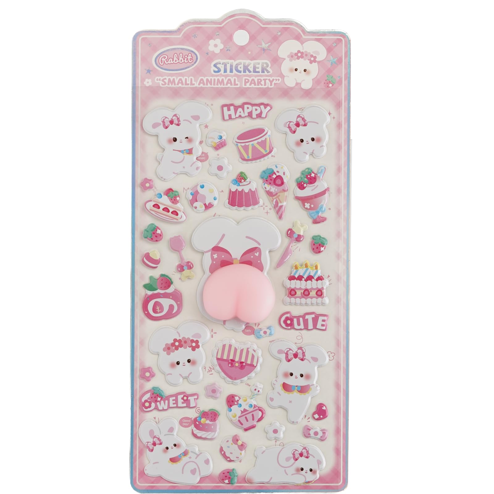 おしりシール ぷにぷに 桃尻 ハート型 スクイーズ風 3D 立体シール ぷにぷに触感 ストレス解消 手帳デコ スマホケース かわいい 動物 いぬ くま ねこ パンダ 重複なし (ウサギ)