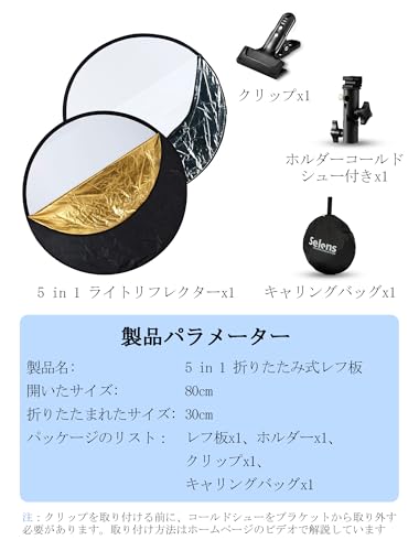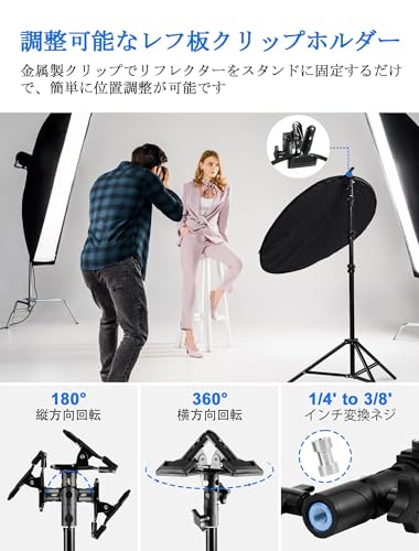 Selens 撮影用 5-IN-1丸レフ板80cm+リフレクターホルダー+2Mライトスタンド 撮影スタジオキット レフ板 スタンド 伸縮可能ブームアーム 360°回転可能 ホルダー長さ66~180cm スタンド高さ70~200cm 各サイズレフ板に対応
