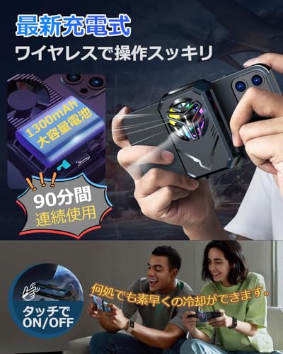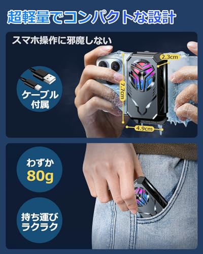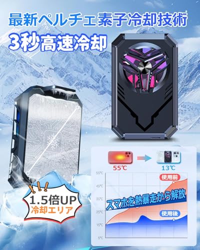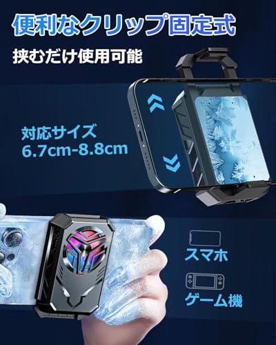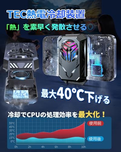 KAKETE スマホ 冷却ファン【充電式ワイヤレス・ペルチェ素子・3秒急速冷却】スマホクーラー USB扇風機 軽量 クリップ式 スマホ散熱器 小型 LED温度表示 Type-C充電式 スマホ冷却 揺れない 原神 荒野行動 FGO実況用 高負荷ゲーム 熱対策 Android・iPhone・iPad対応 静音設計 ゲーム/実況/生配信/写真撮影/動画視聴