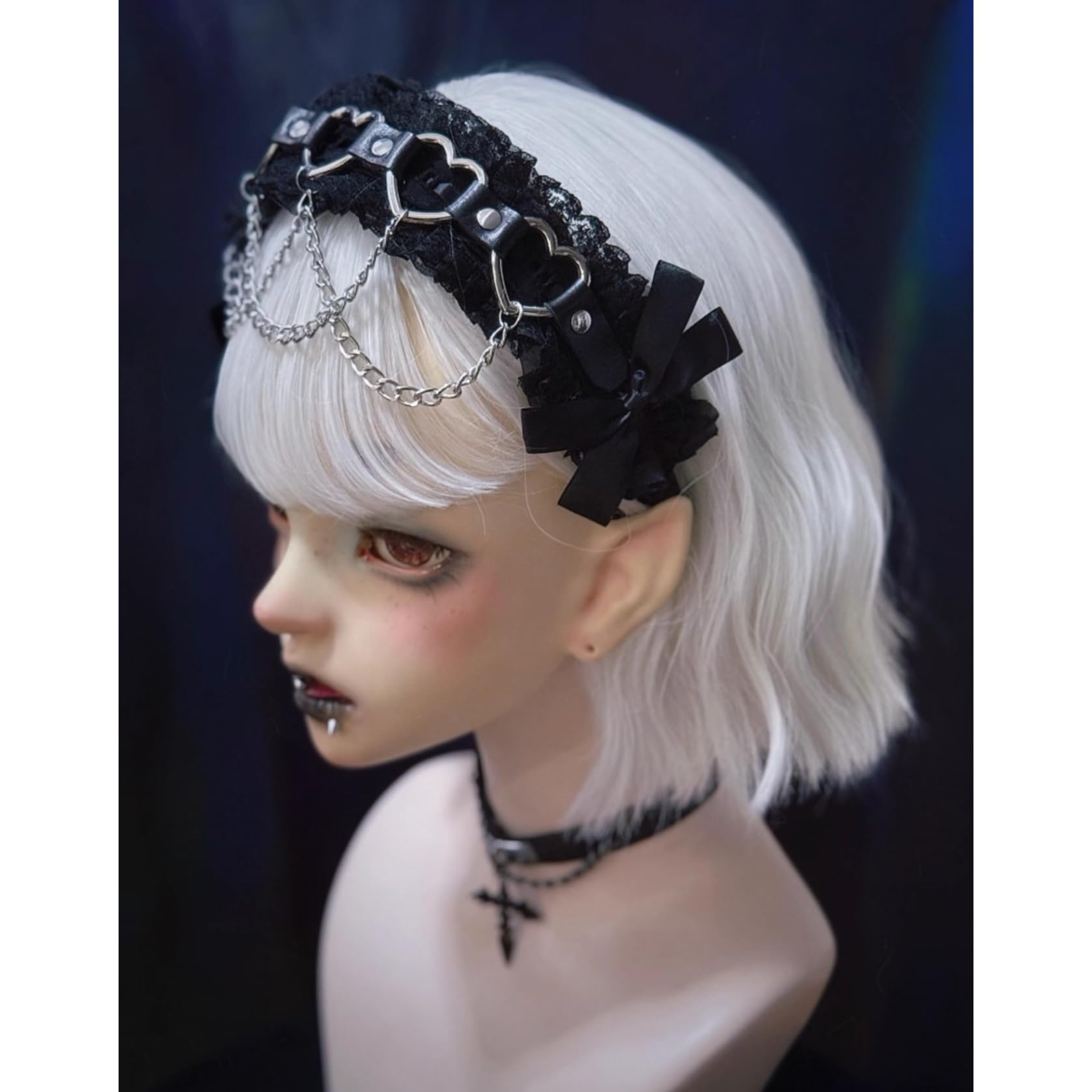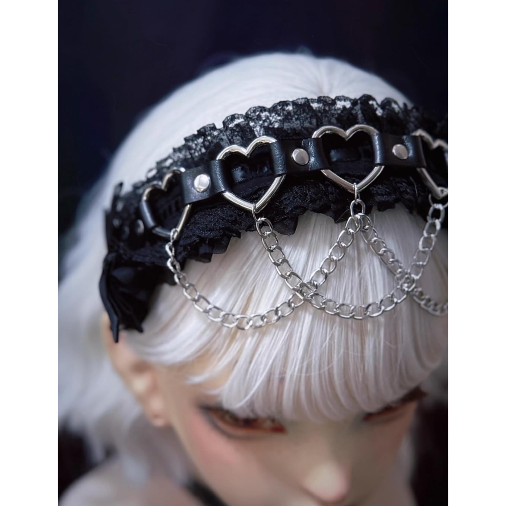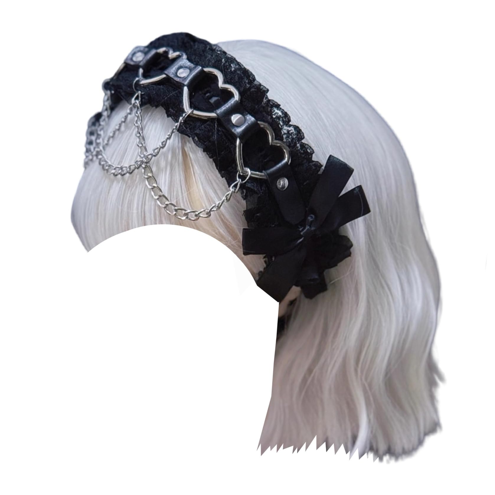 [ボズとガルヤ] カチューシャ 地雷系 ヘッドドレス サブカル系 チェーン ダーク系 ベルト 原宿パンク 髪飾り ロリィタ ゴシック風 蝶結び 黒魔術 コスチューム スタッド コスプレ クロス柄 病みかわ 変装 撮影用