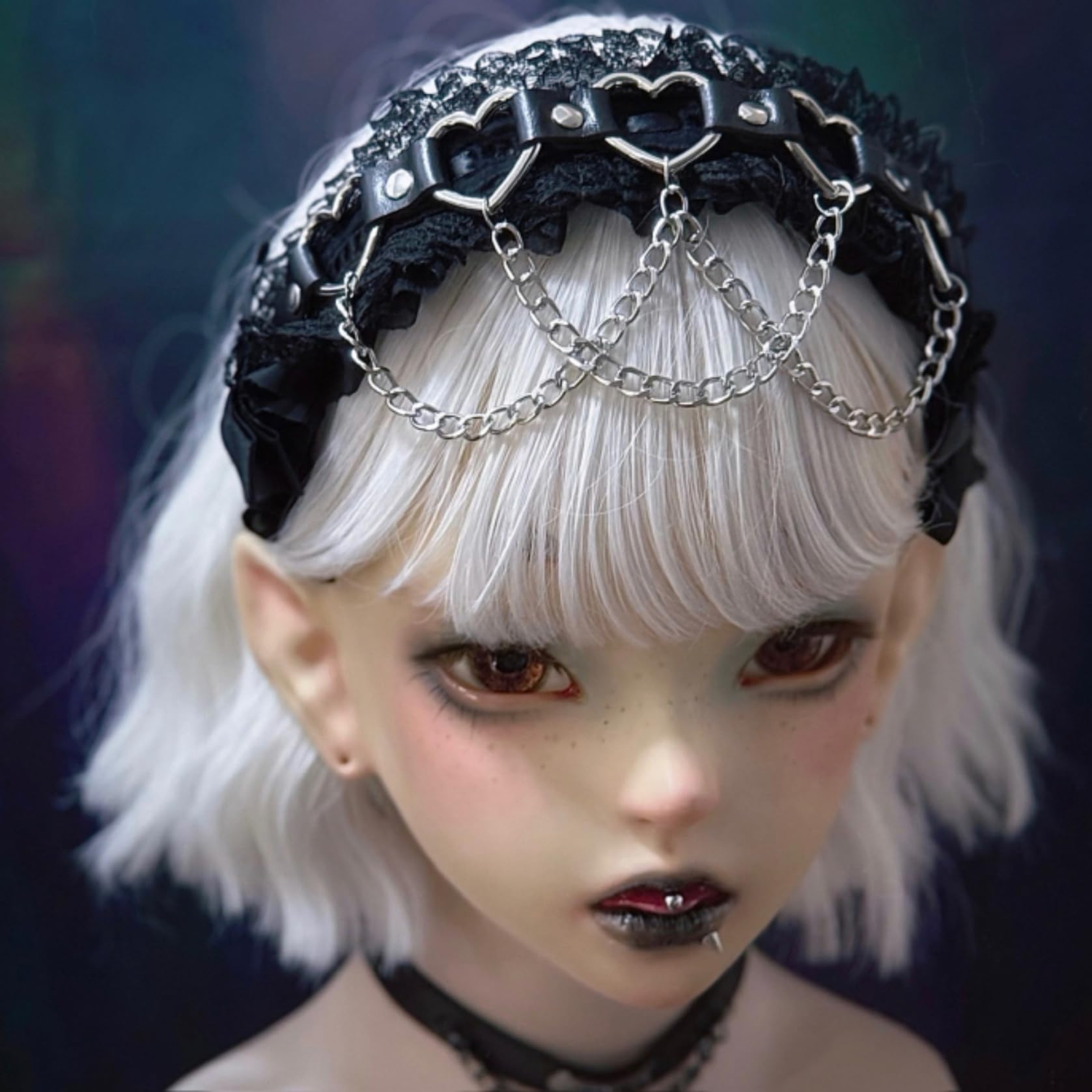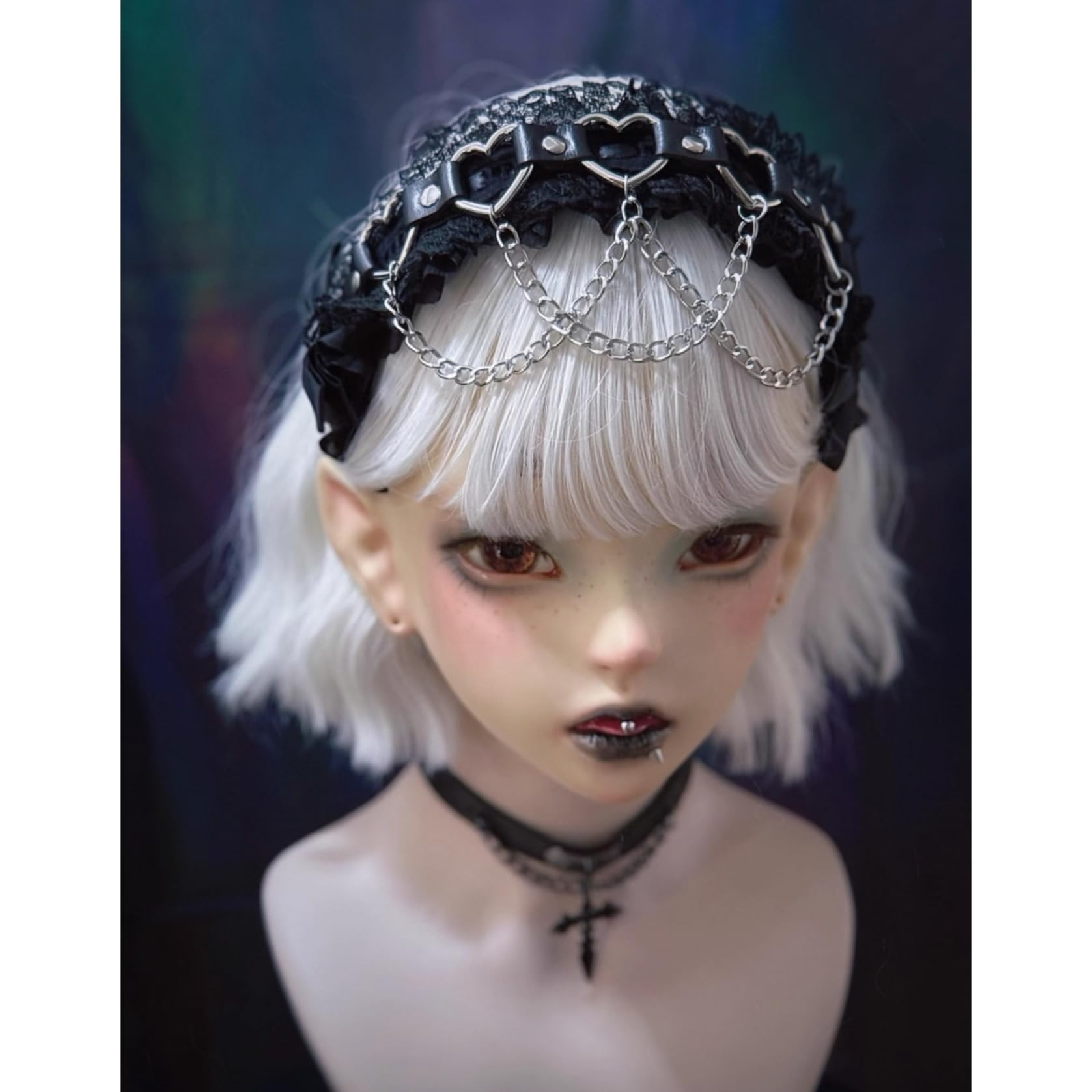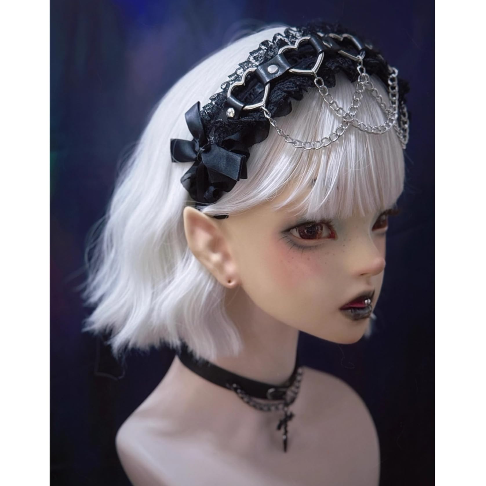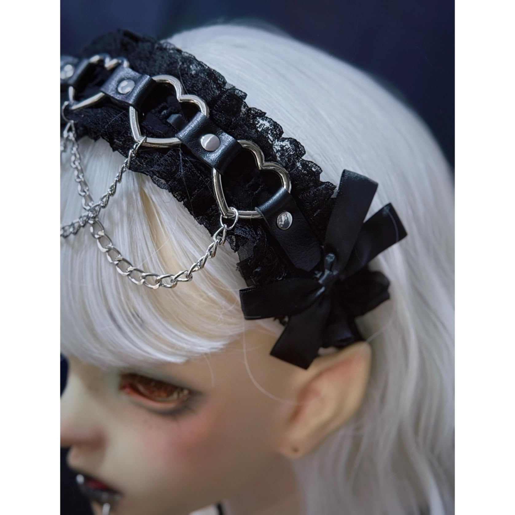 [ボズとガルヤ] カチューシャ 地雷系 ヘッドドレス サブカル系 チェーン ダーク系 ベルト 原宿パンク 髪飾り ロリィタ ゴシック風 蝶結び 黒魔術 コスチューム スタッド コスプレ クロス柄 病みかわ 変装 撮影用
