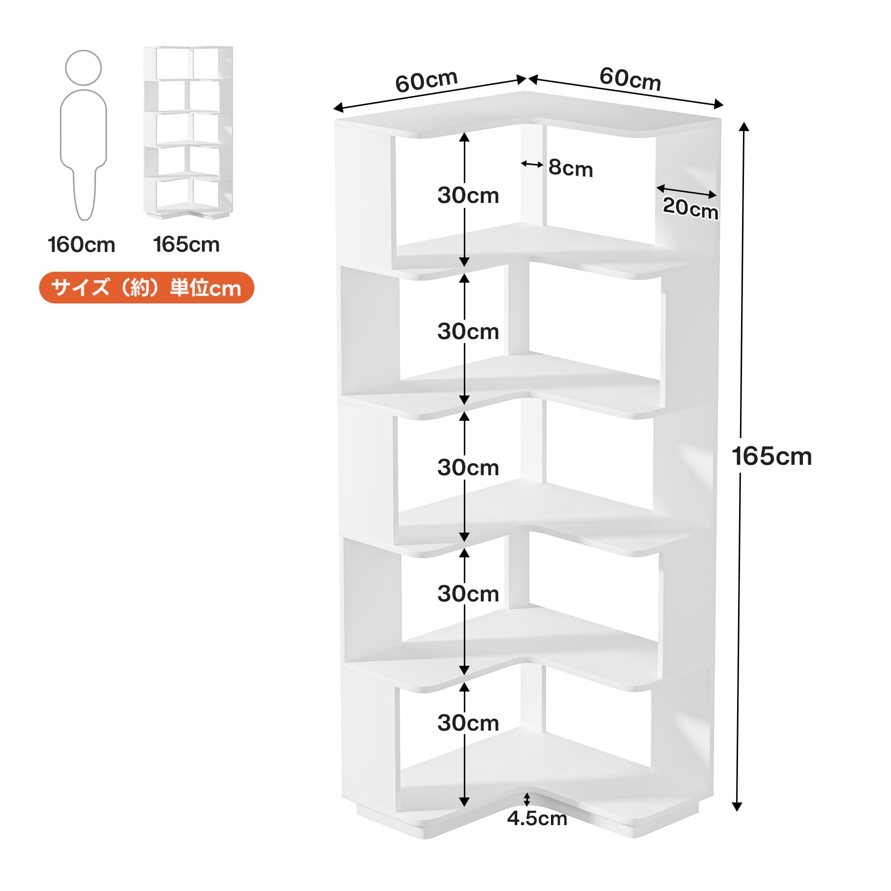 Tribesigns コーナー棚 本棚 コーナーラック オープンラック 収納ラック 幅45㎝ ホワイト