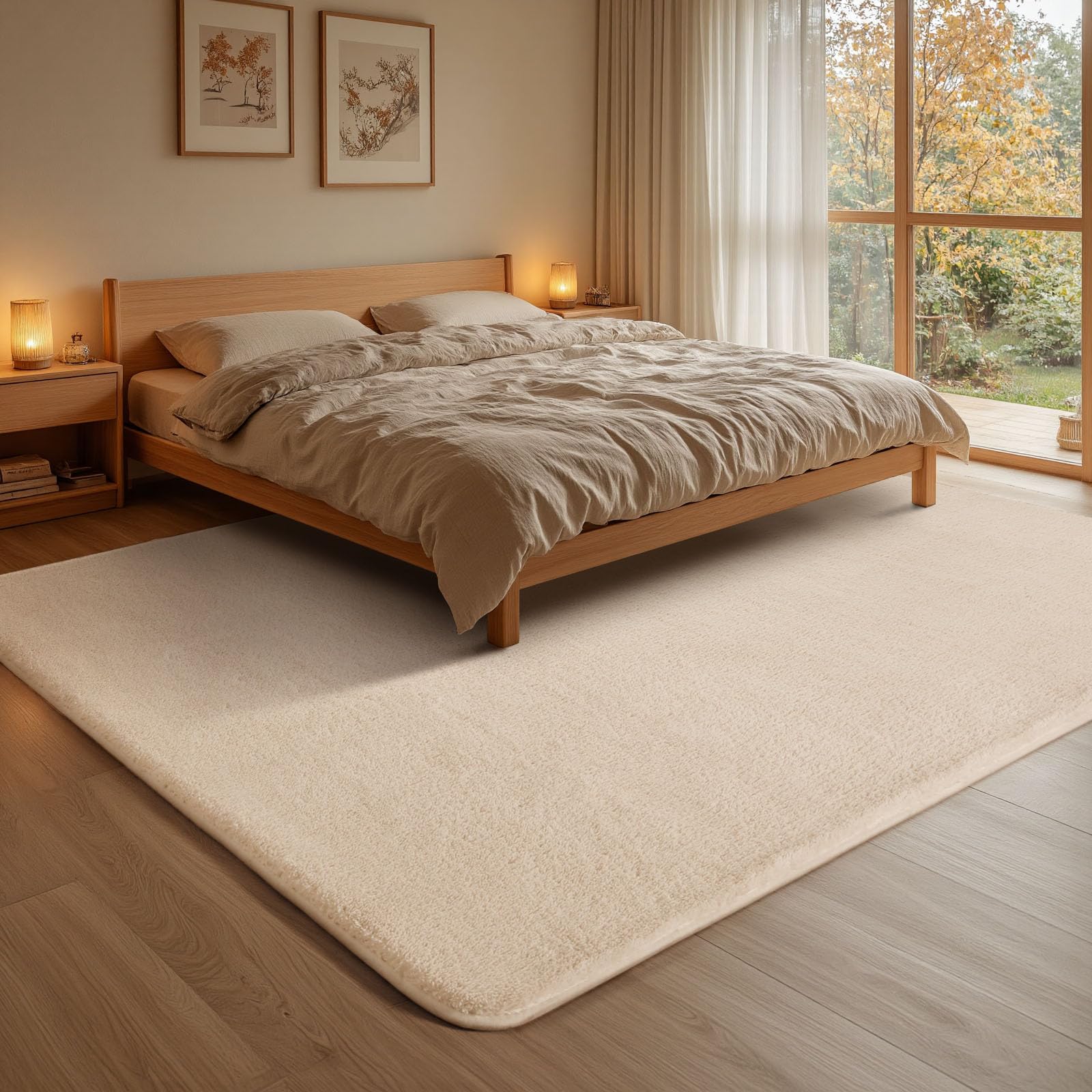 ラグマット カーペット 240x300cm 全厚約2cm 滑り止め付 洗えるラグ 抗菌 ふわっと手触り 防音絨毯 オールシーズ おしゃれな北欧風シャギーラグ 極厚ウレタンフォーム10mm 寝室、リビングルーム用のふわふわラグ、象牙