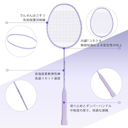 バトミントンセット バドミントン ラケット 軽量炭素繊維 2つのバドミントンラケットと2つのバドミントンと1つのバッグを含み、 アウトドアや家族旅行に適しています