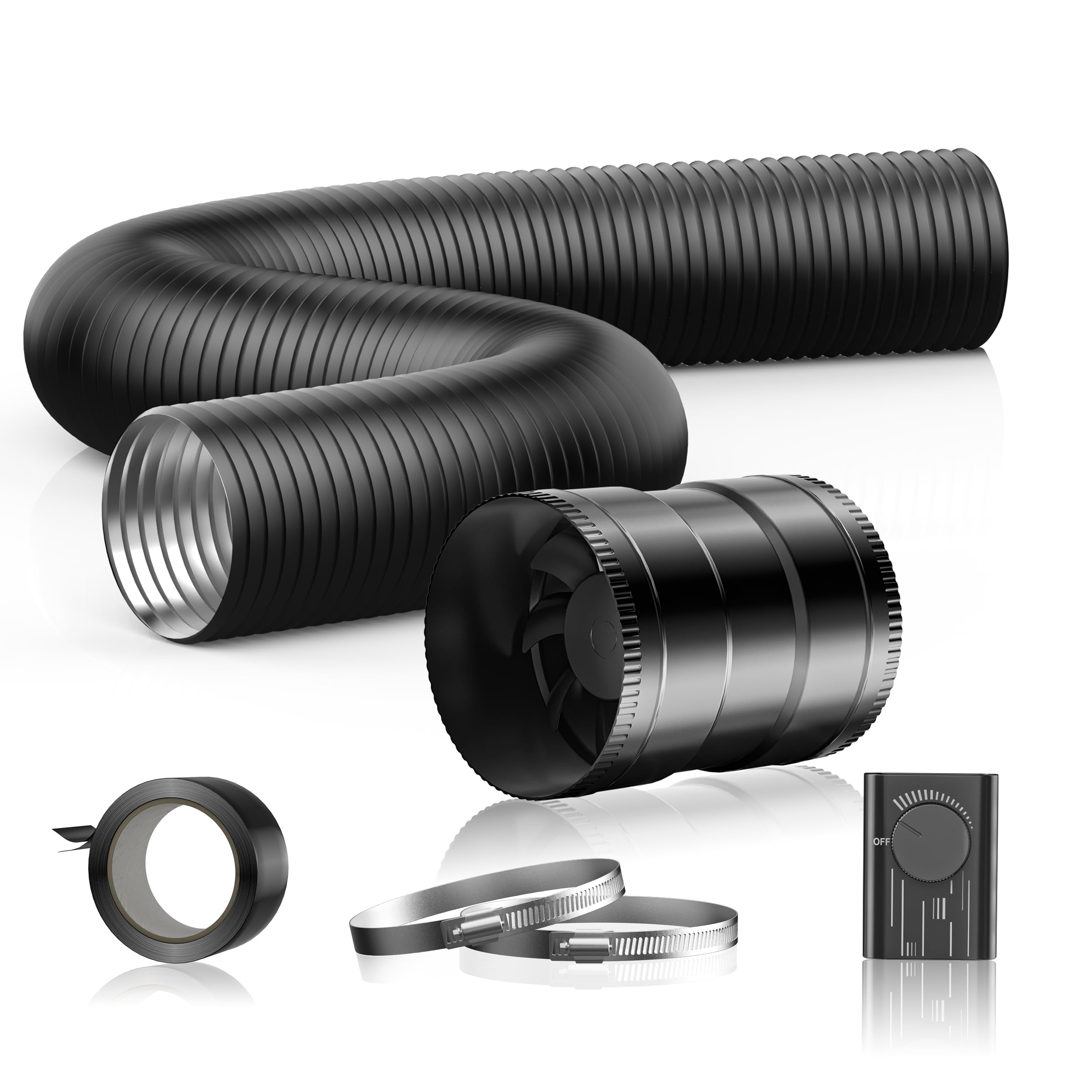 Hon&Guan ダクトファン セット 100mm 中間取付型【インボイス制度登録店】ダクト用 換気扇 強力 省エネ 静音 塗装ブース用 家焼肉 丸形タイプ 産業用換気扇 ダクトホース入り/2.5m1本 クランプ入り/2個 汎用テープ付 取扱説明書付(HI-100SD/φ100mm,セット品)