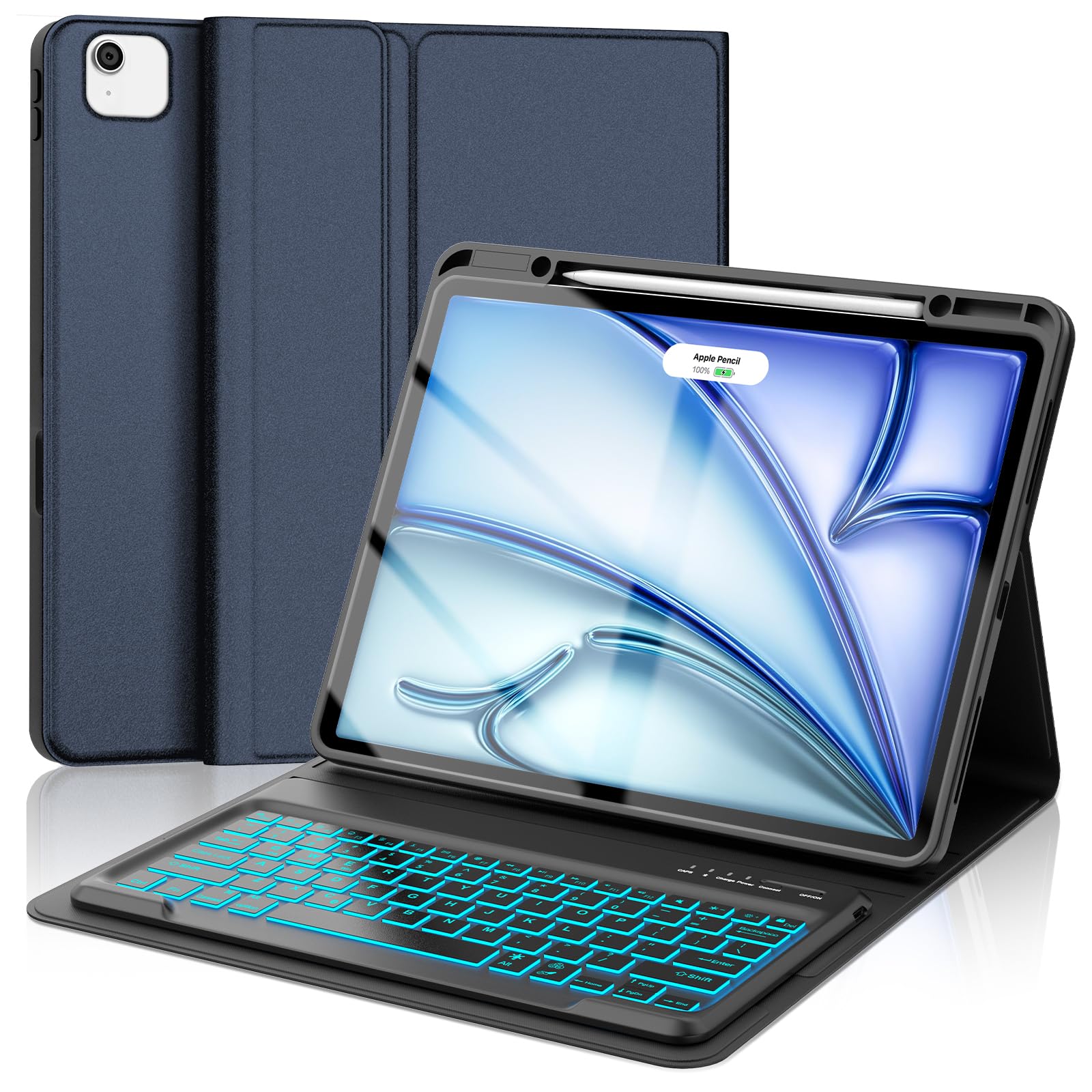 SENGBIRCH iPad Air 13インチ (M3 2025/M2 2024) キーボード ケース 7色バックライト 着脱式 Bluetooth キーボード カバー iPad Pro 12.9インチ (第6/5/4/3世代)兼用 ペン収納&充電対応 多角度調整 軽量 耐衝撃 防汚素材 全面保護 日本語説明書付き (ネイビー US配列)