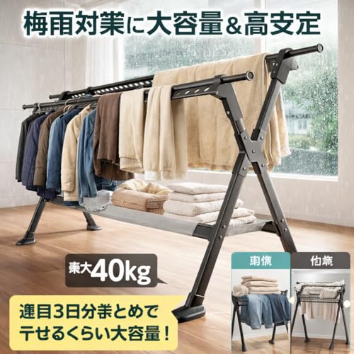 Aikenn 物干しスタンド 物干しラック 物干し竿 洗濯物干しベランダ コンパクト 洗濯干し台 高さ調節 折り畳み式 キャスター付き 組立不要 物干しハンガー タオルハンガー アルミニウム合金製 頑丈 錆びにくい 花粉/梅雨対策 洗濯乾燥 (幅160cm)